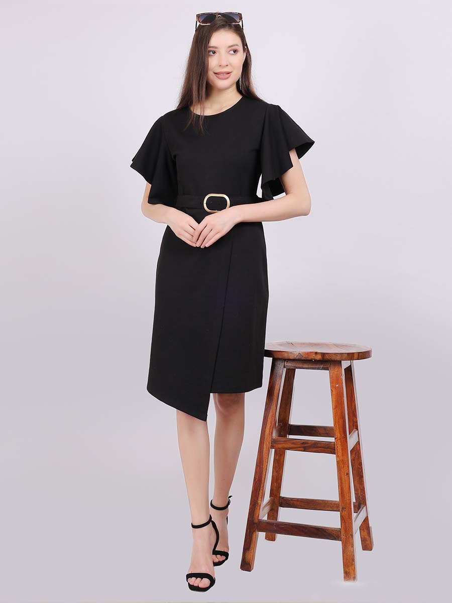Introducing the AUMBE Fashion Solid Knee-Length Bodycon Dress with Belt, a sleek and stylish choice for any wardrobe. This elegant dress features a figure-flattering bodycon fit and comes with a chic belt to accentuate your waistline. Perfect for both day and night events, this versatile dress ensures you look sophisticated and polished on any occasion.