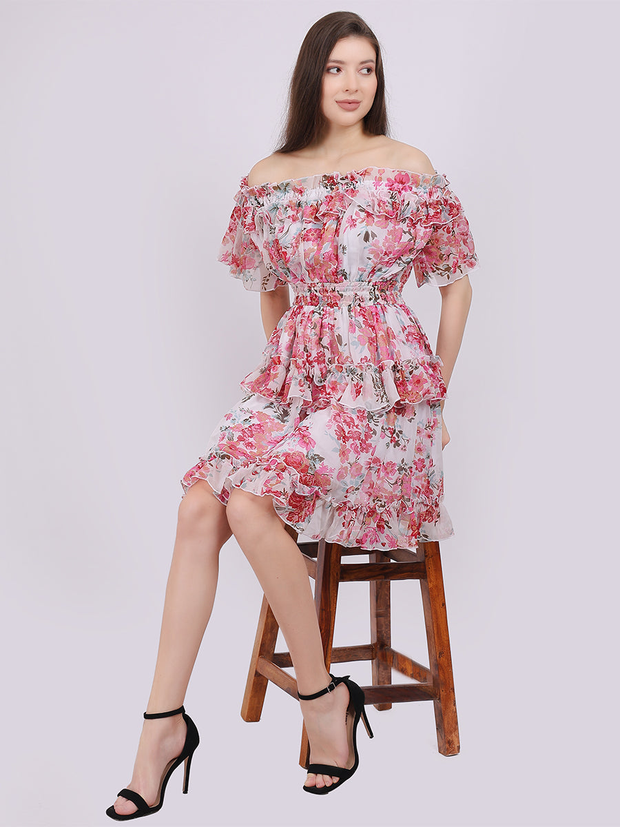 Introducing the AUMBE Floral Print Off-Shoulder Layered Fashion Dress, a perfect mix of romance and style. This enchanting dress features a charming floral print and a chic off-shoulder design, complemented by delicate layers for added elegance. Ideal for a sunny day out or a special evening occasion, this versatile dress ensures you look effortlessly stunning wherever you go.