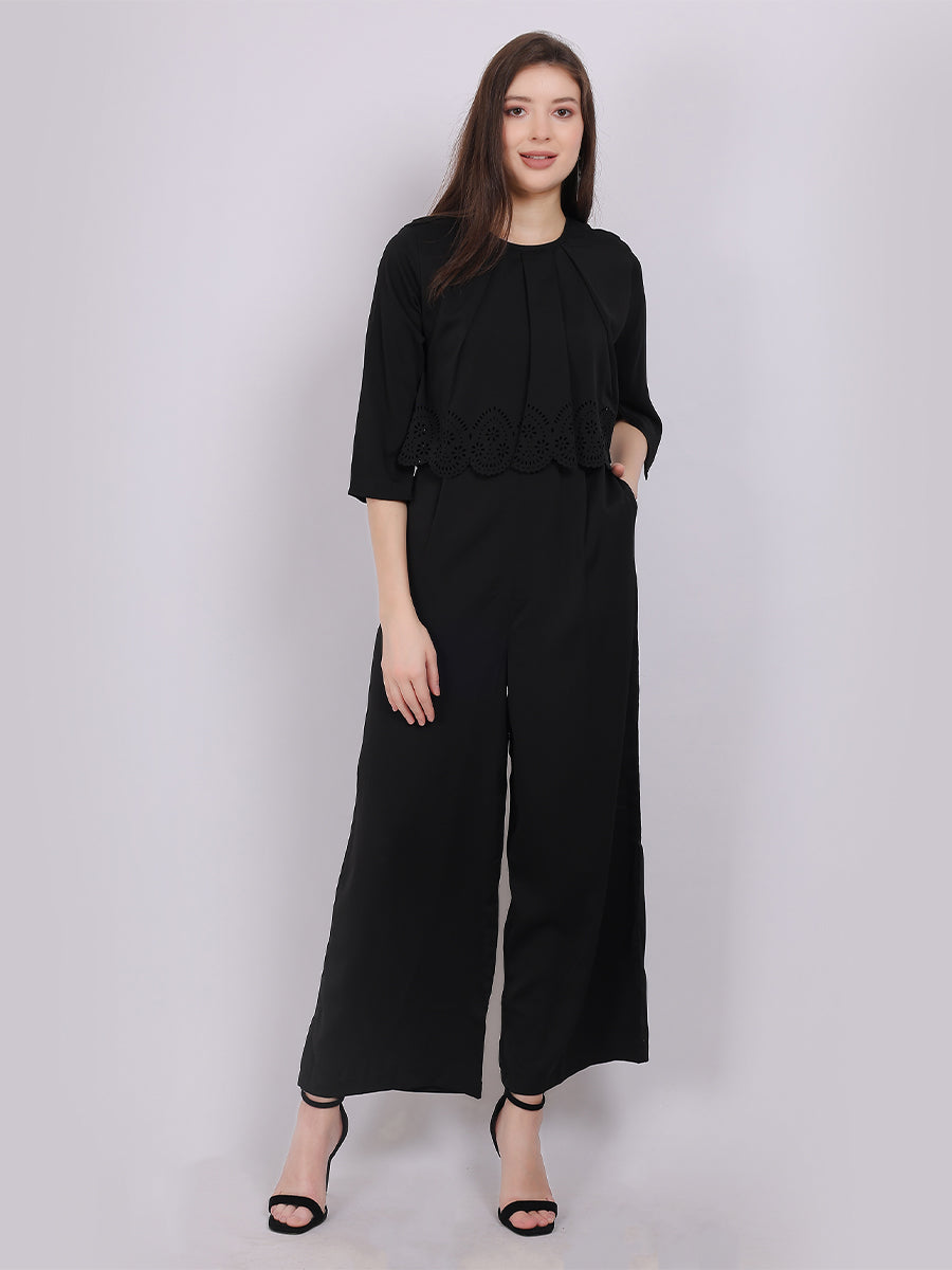 Solid Full Length Fashion Jumpsuit With Fashion Cape Sleeves