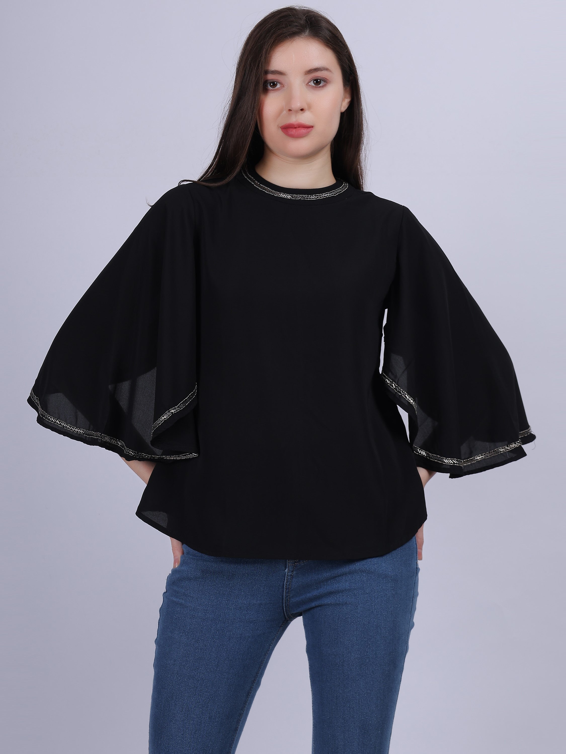 Basic Fashion Casual Top With Handwork On Neck & Sleeves