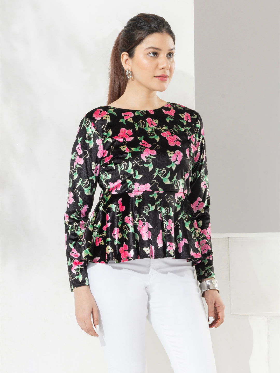 Introducing the AUMBE Floral Print Velvet Party Top, a blend of elegance and glamour. Designed with plush velvet and vibrant floral prints, this top is perfect for making a statement at any celebration. Ideal for evening parties or festive gatherings, it adds a touch of luxury to your look.