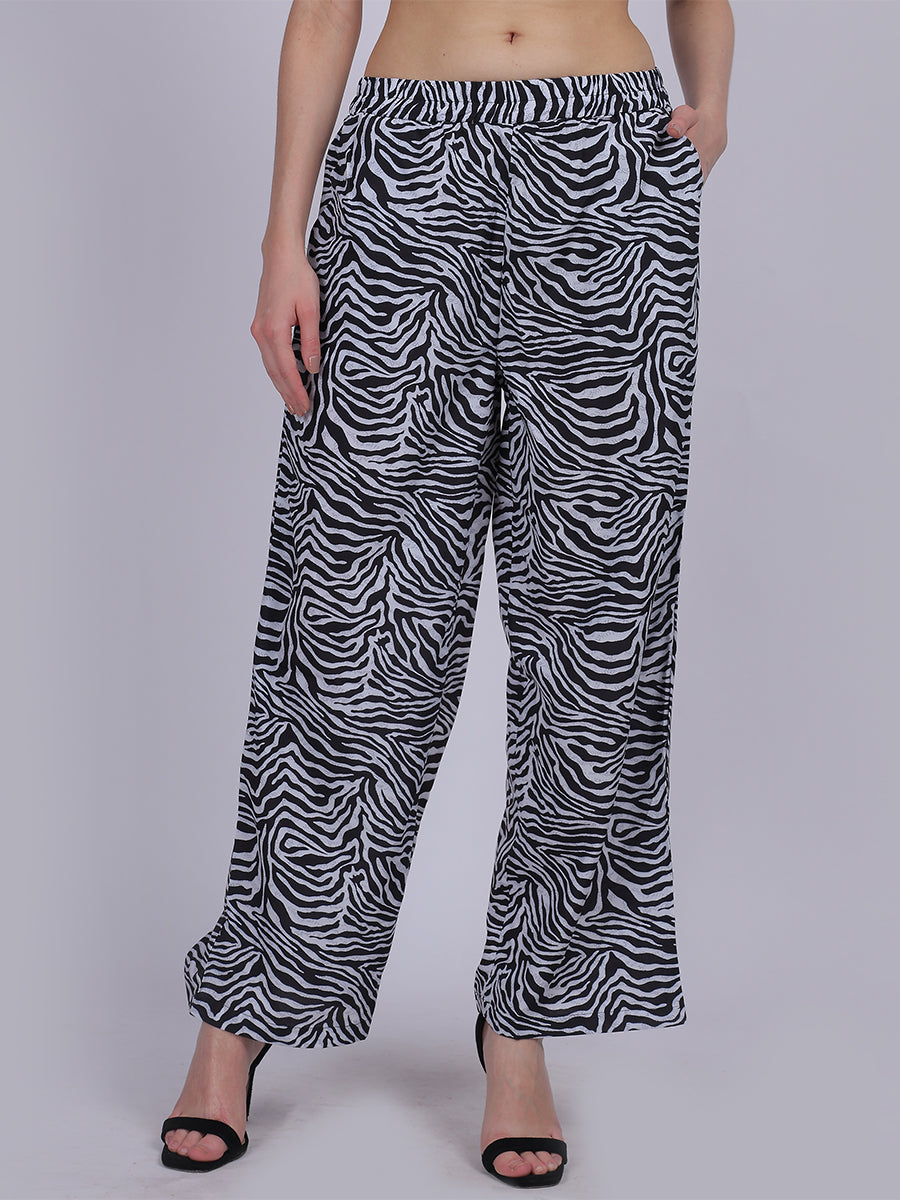 Black Zebra Straight Fit Printed Palazzo Fashion Pants