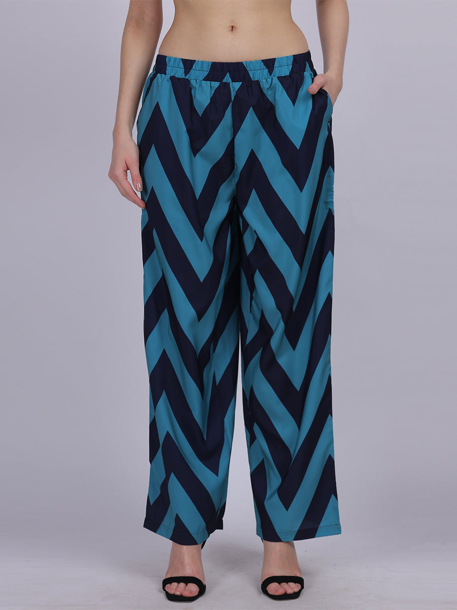 Blue Straight Fit Printed Palazzo Fashion Pants