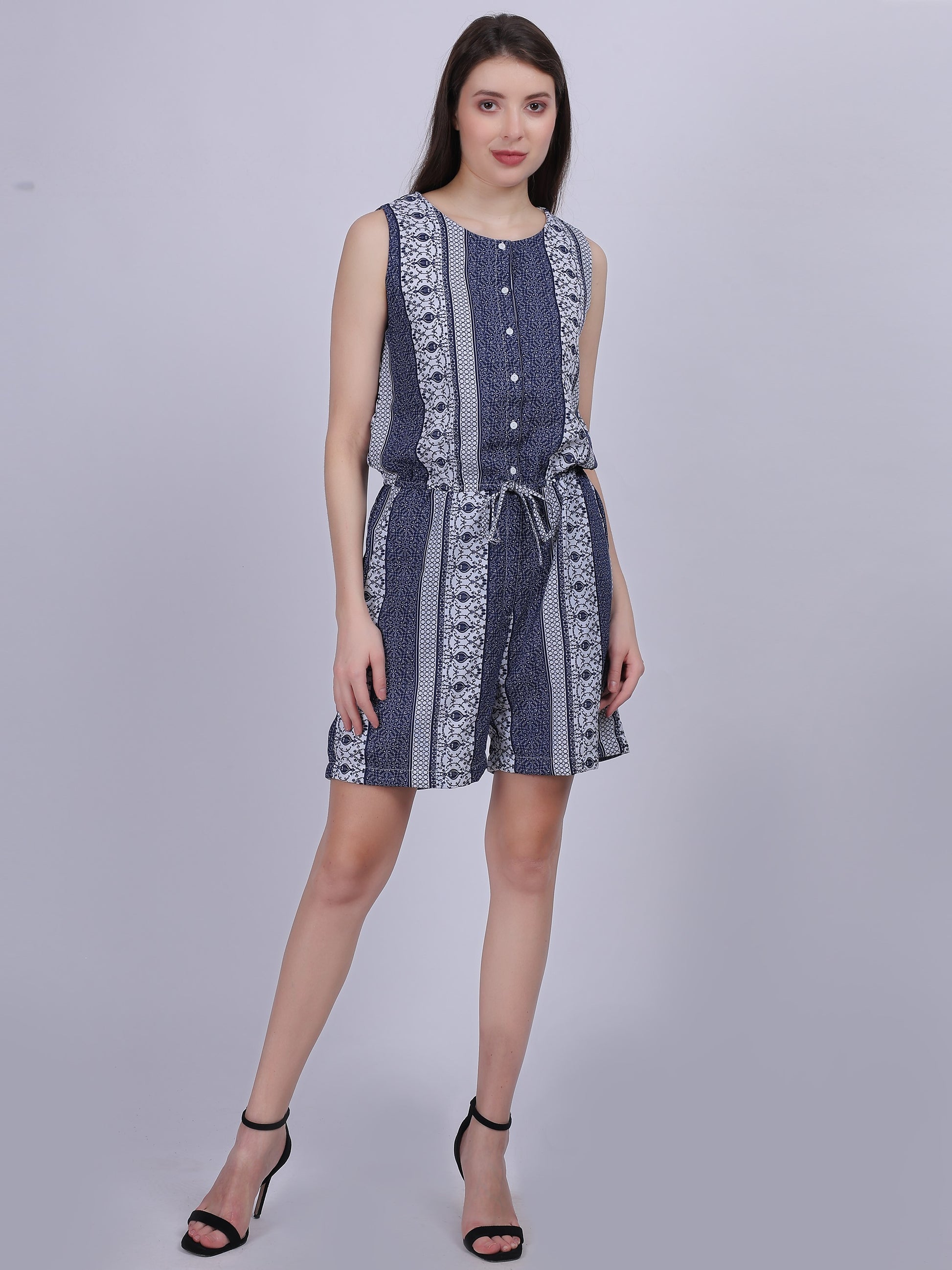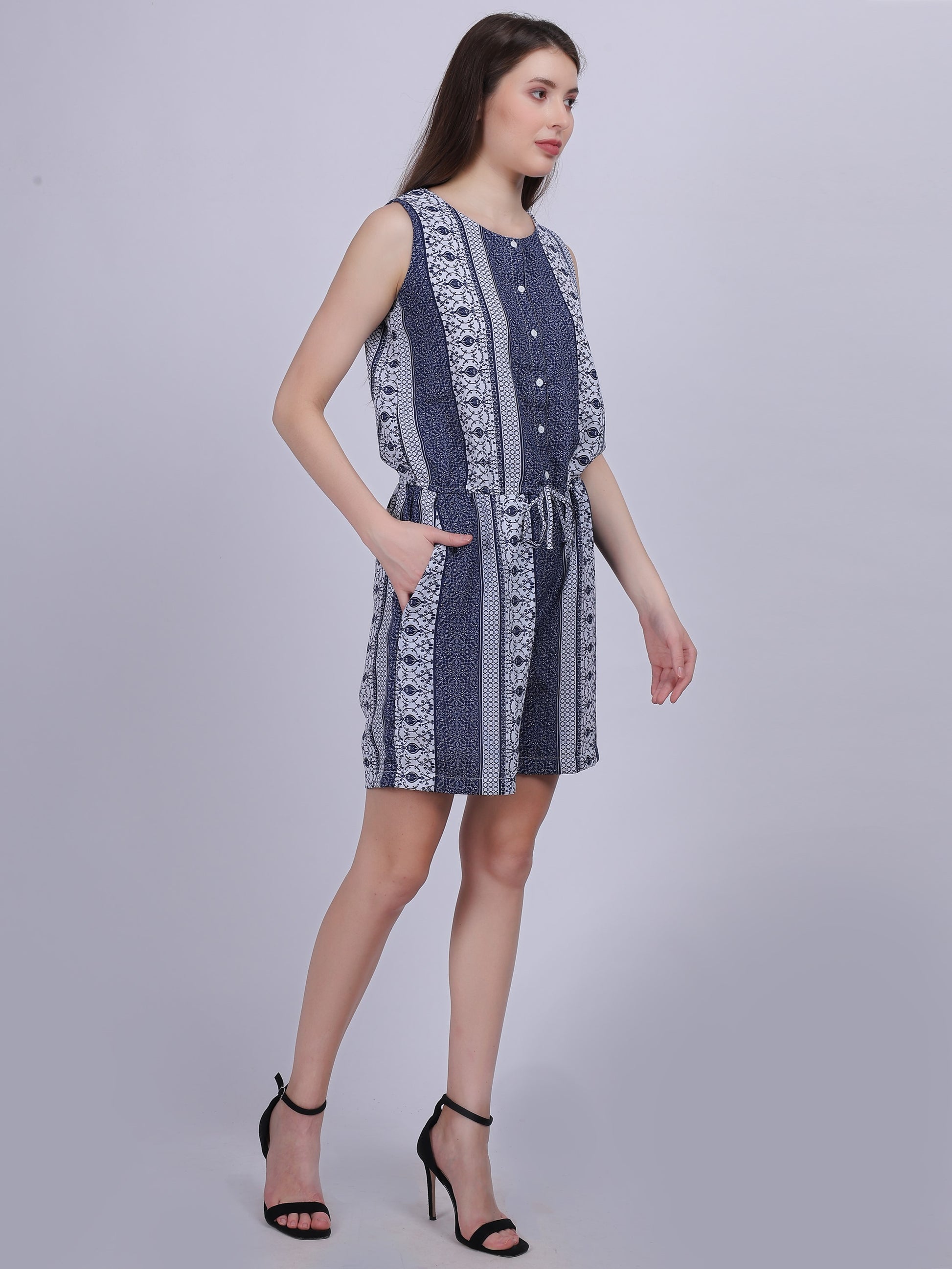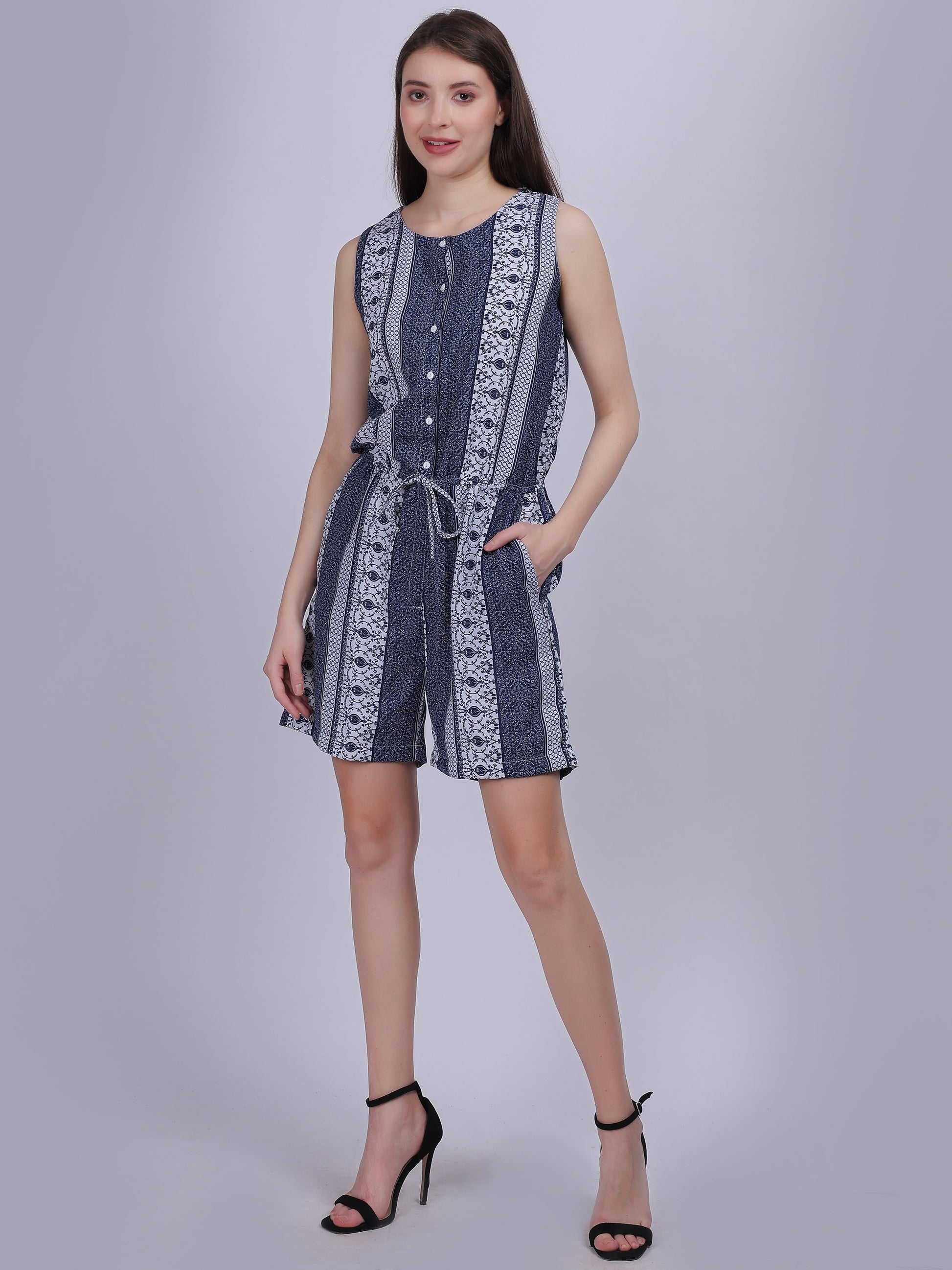 Bohemian Print Short Playsuit Romper With Pockets