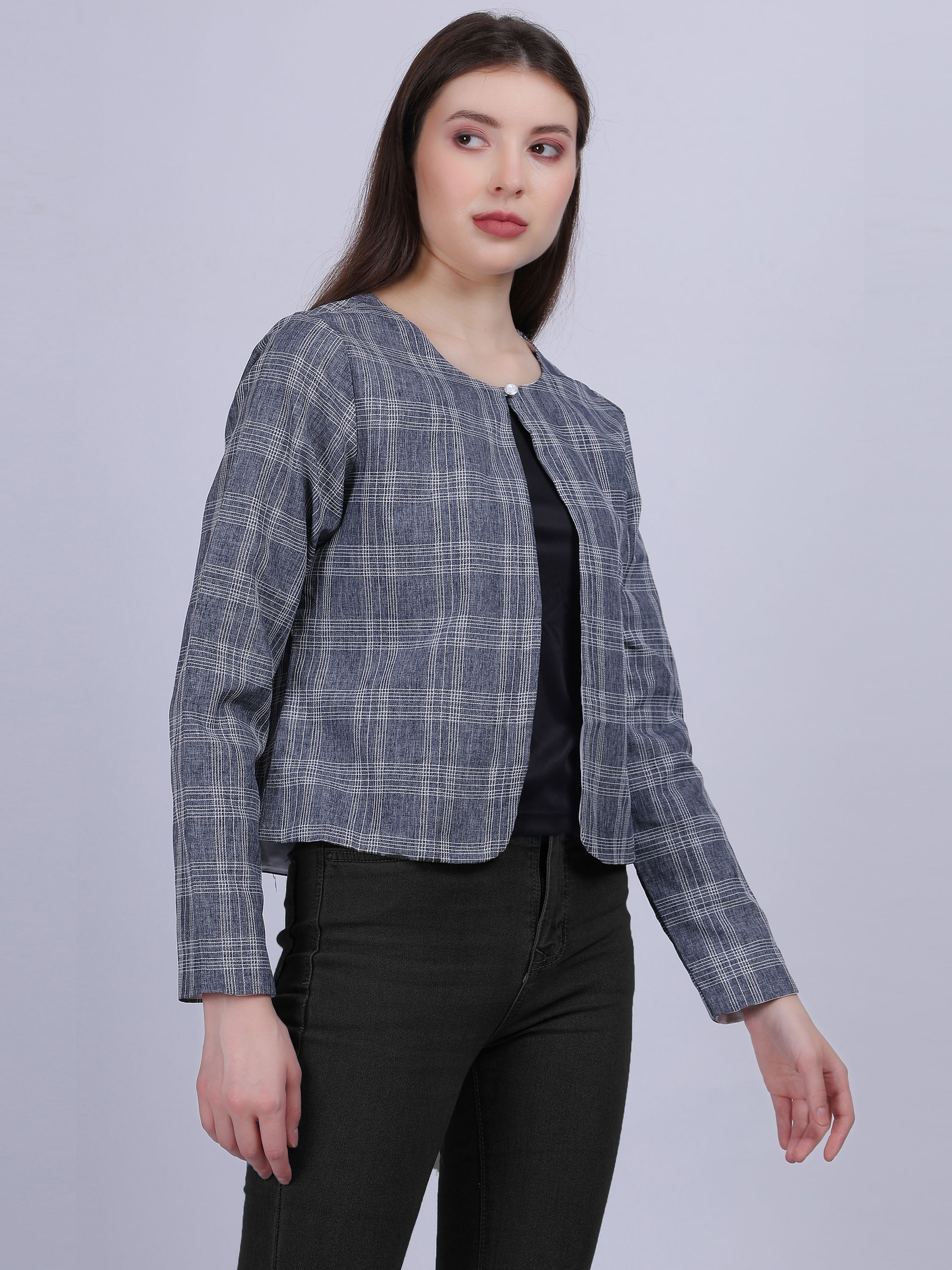 The AUMBE Cotton Checkered Print Fashion Short Jacket is a stylish piece featuring a classic checkered pattern. Made from comfortable cotton, it offers a versatile and fashionable addition to any wardrobe. The short jacket design adds a modern twist, making it perfect for layering over various outfits. Ideal for both casual and semi-formal occasions, this jacket combines comfort with a chic aesthetic.
