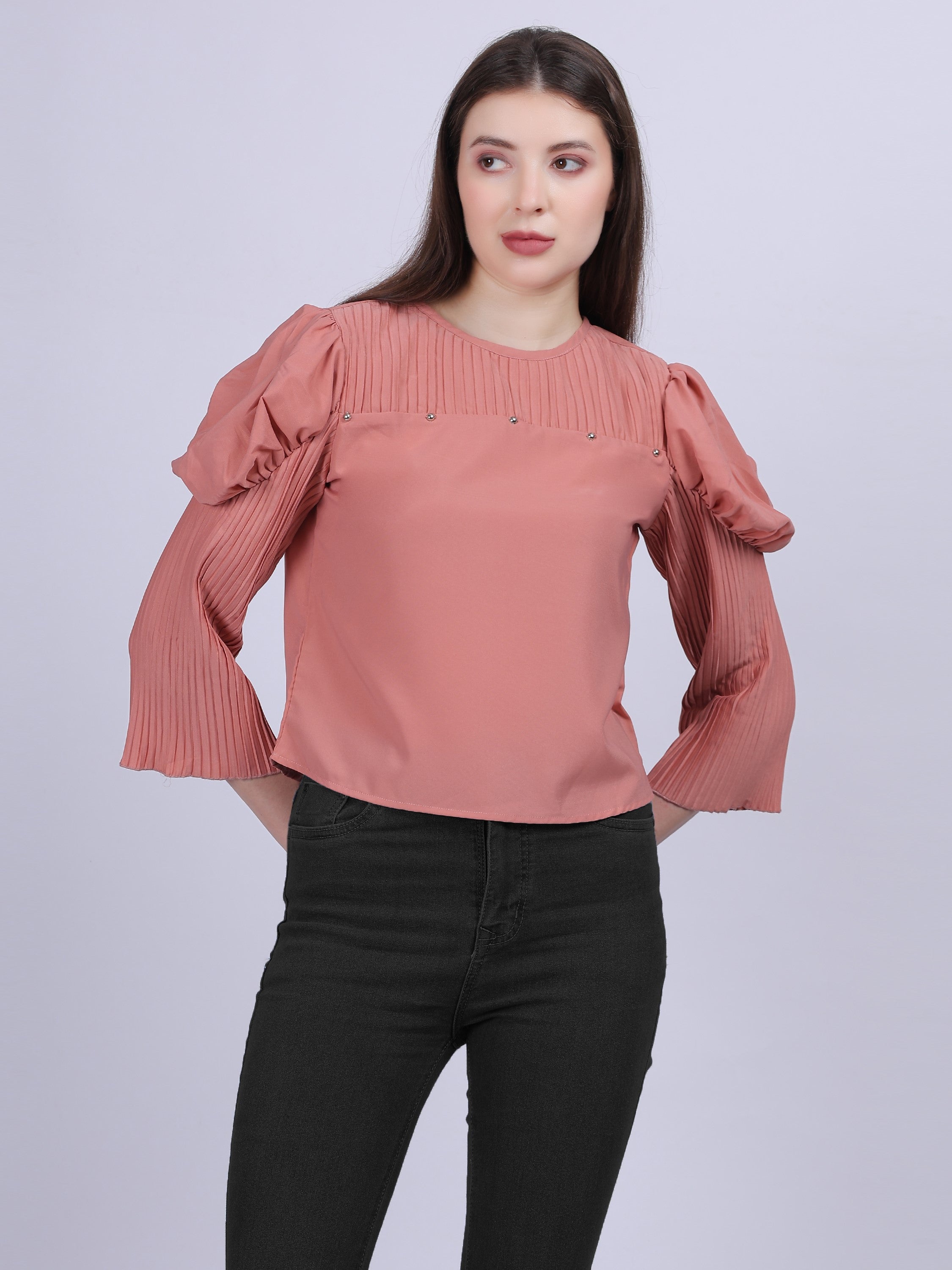 - FASHION TOP WITH PLEATED PUFF SLEEVES