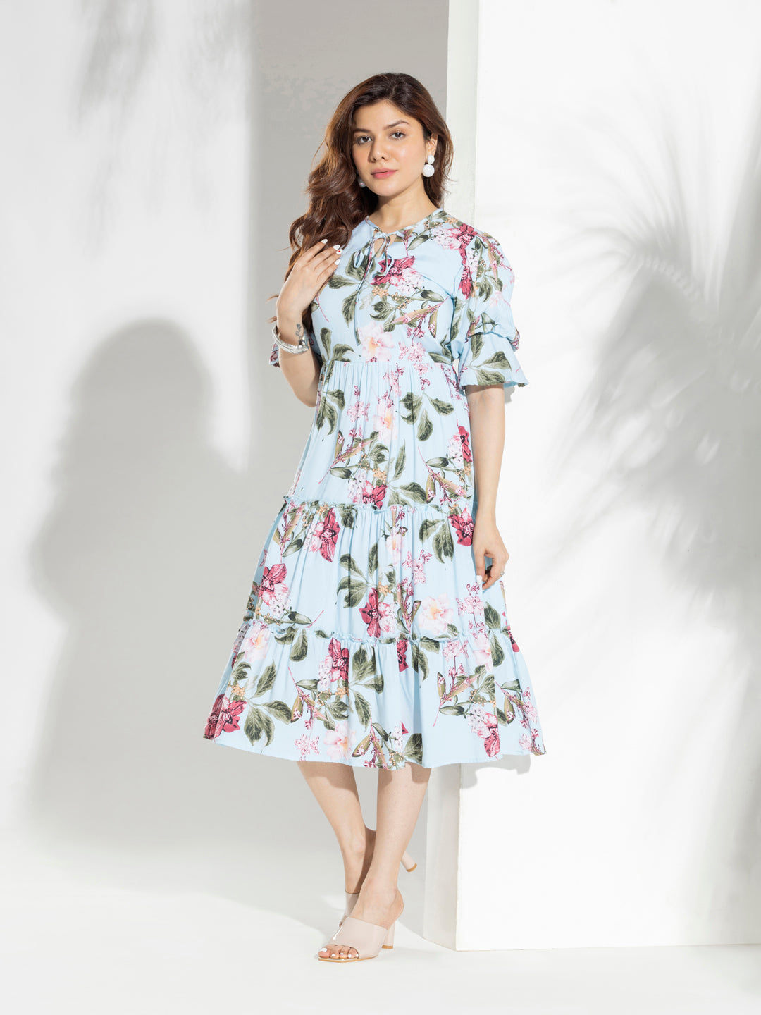Introducing the AUMBE Fashion Floral Print Layered Dress, a beautiful fusion of elegance and femininity. Featuring a vibrant floral print and a flattering layered design, this dress offers a flowy, chic look. Perfect for casual outings or semi-formal occasions, it effortlessly combines style and comfort.