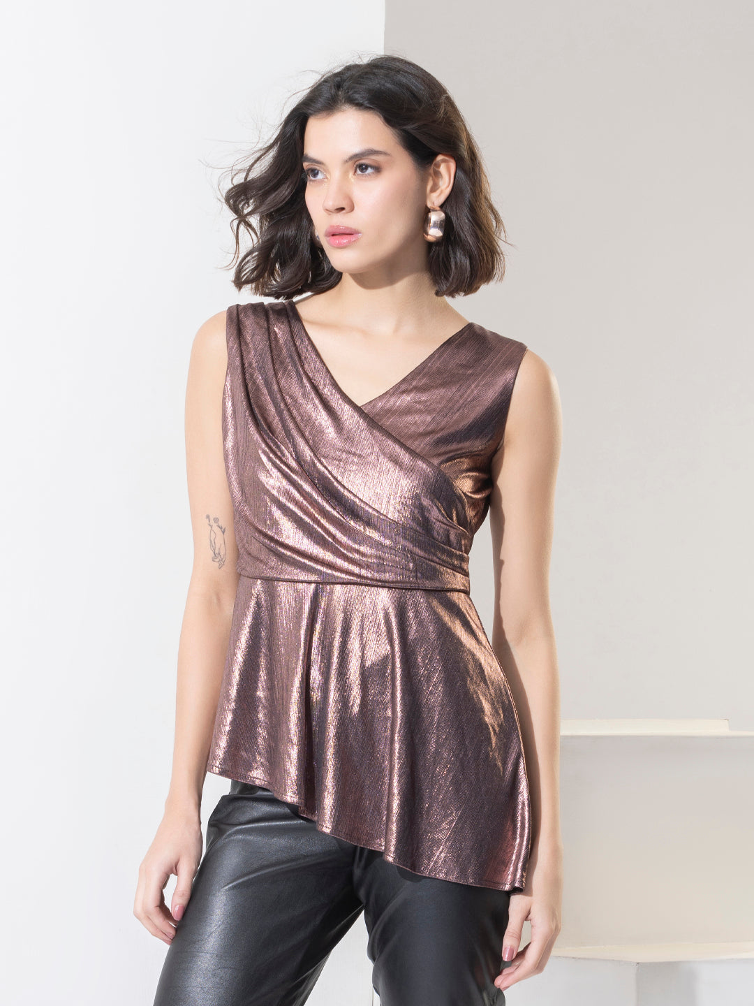 Turn heads with the AUMBE Shimmer Asymmetric Party Wear Top, a statement piece for your special occasions. Designed with a shimmering finish and an eye-catching asymmetric hemline, this top effortlessly blends glamour and sophistication. Perfect for parties or evening events, it ensures you shine wherever you go.