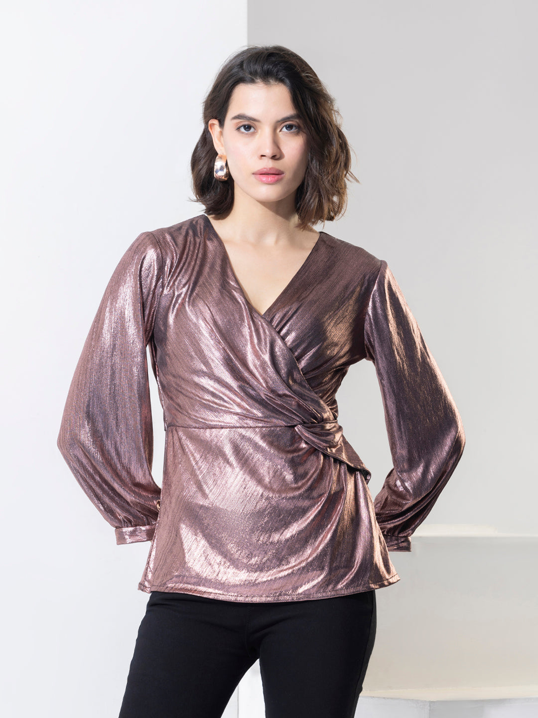 Shine bright with the AUMBE Shimmer Party Wear Wrap Top, the perfect blend of elegance and glamour. Featuring a shimmering finish and a flattering wrap design, this top adds a touch of sophistication to your party look. Ideal for evening events, it’s your go-to for effortless style.