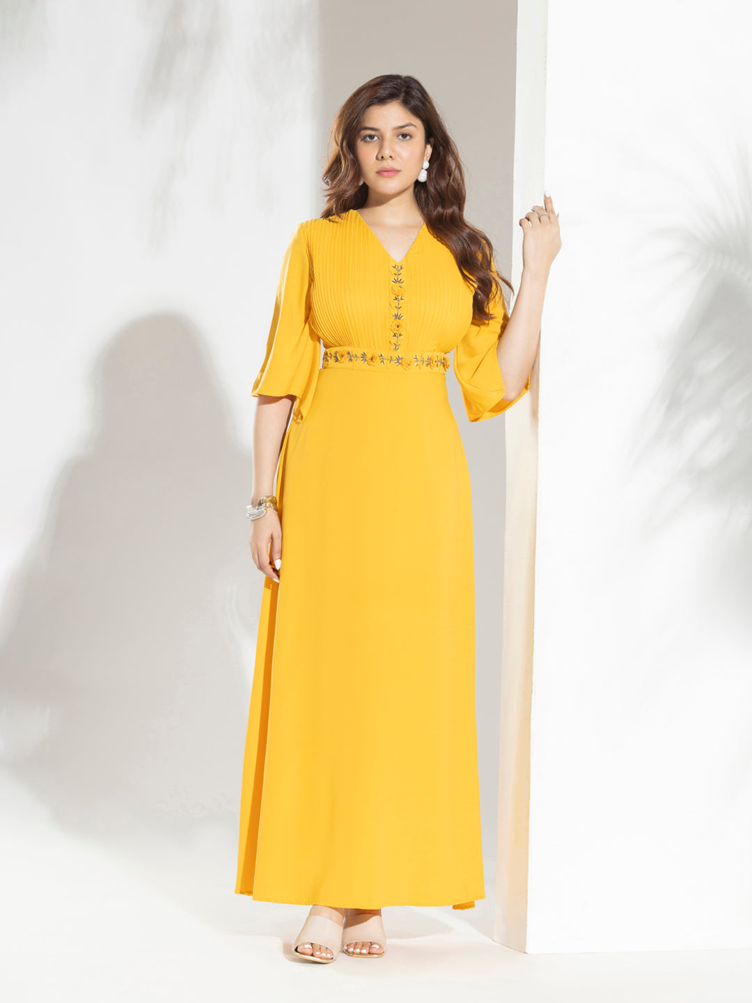 Floor Length Fashion Dress With Pleats & Handwork
