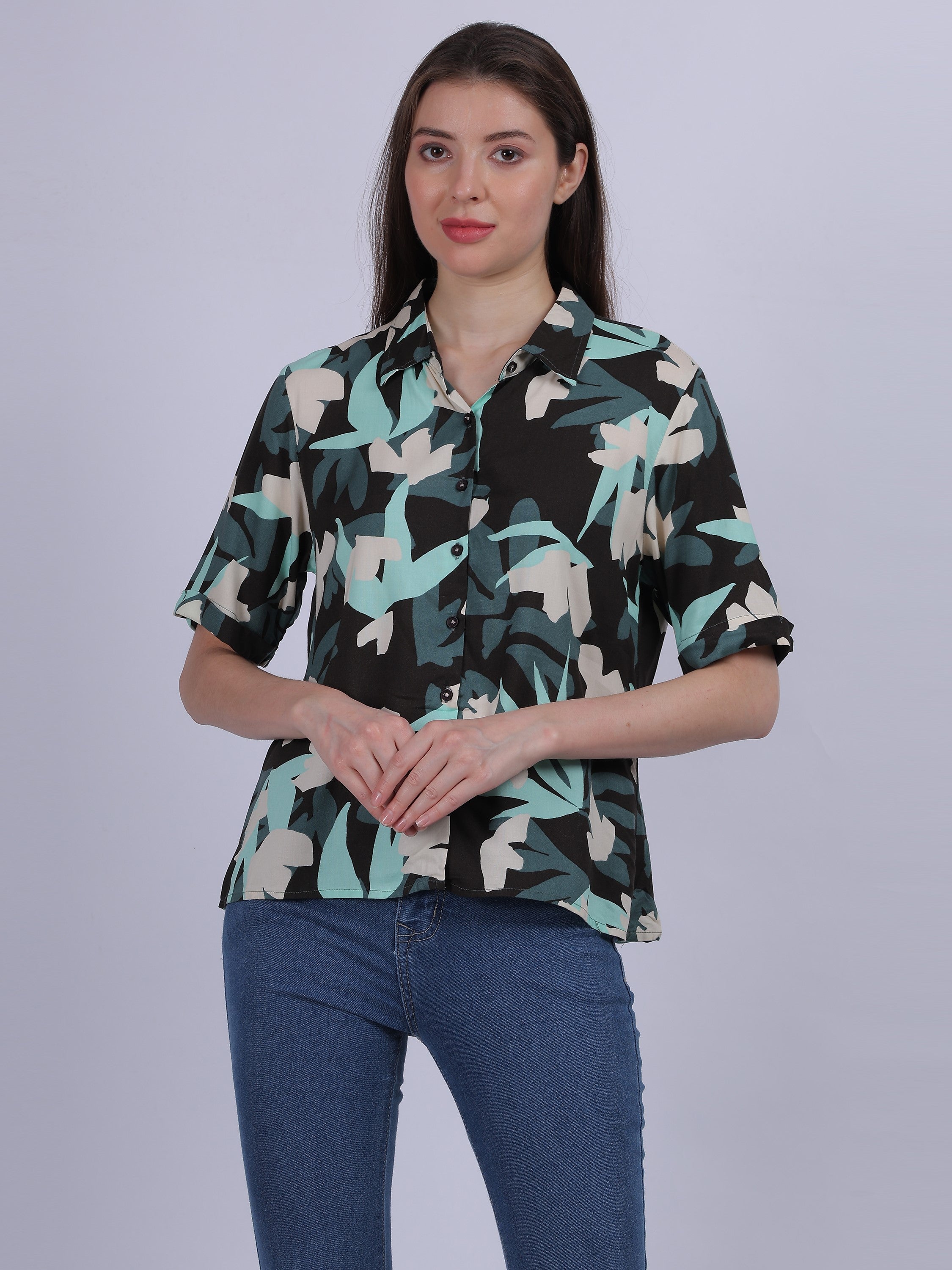 Introducing the AUMBE Floral Print Crop Shirt, a fresh and stylish addition to your wardrobe. This shirt features a vibrant floral print and a cropped silhouette, combining playful patterns with a modern cut. Ideal for casual outings and summer events, it offers a chic and comfortable look that's effortlessly on-trend.