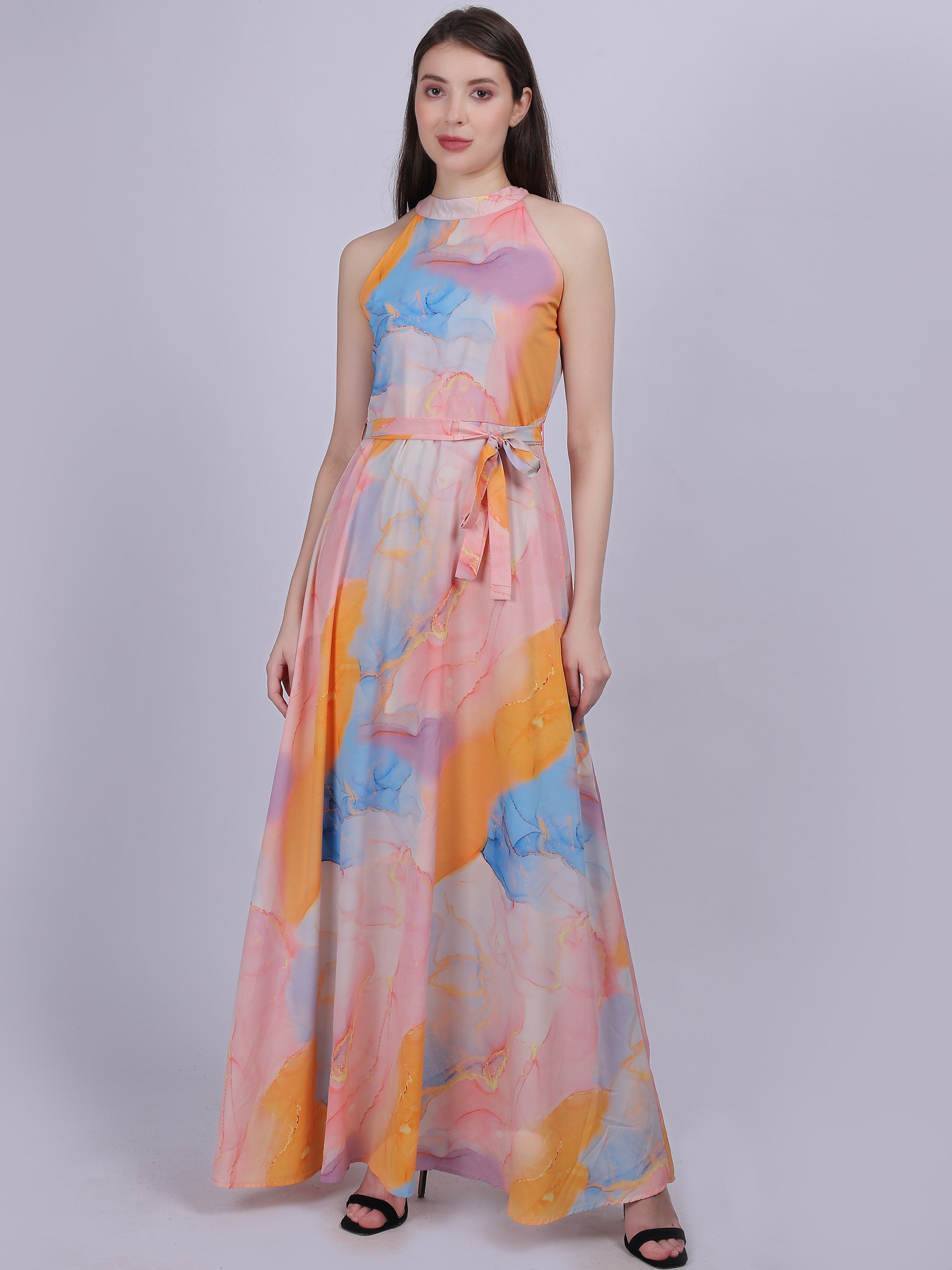 The AUMBE Lava Print Halter Neck Fashion Dress boasts a striking lava print and a flattering halter neck design. Perfect for making a bold statement, this dress combines dynamic style with elegance, ideal for any standout occasion.