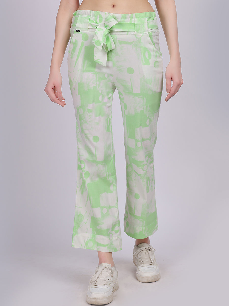 Light Green Tye & Dye Cotton Spandex Fashion Straight Fit Pants