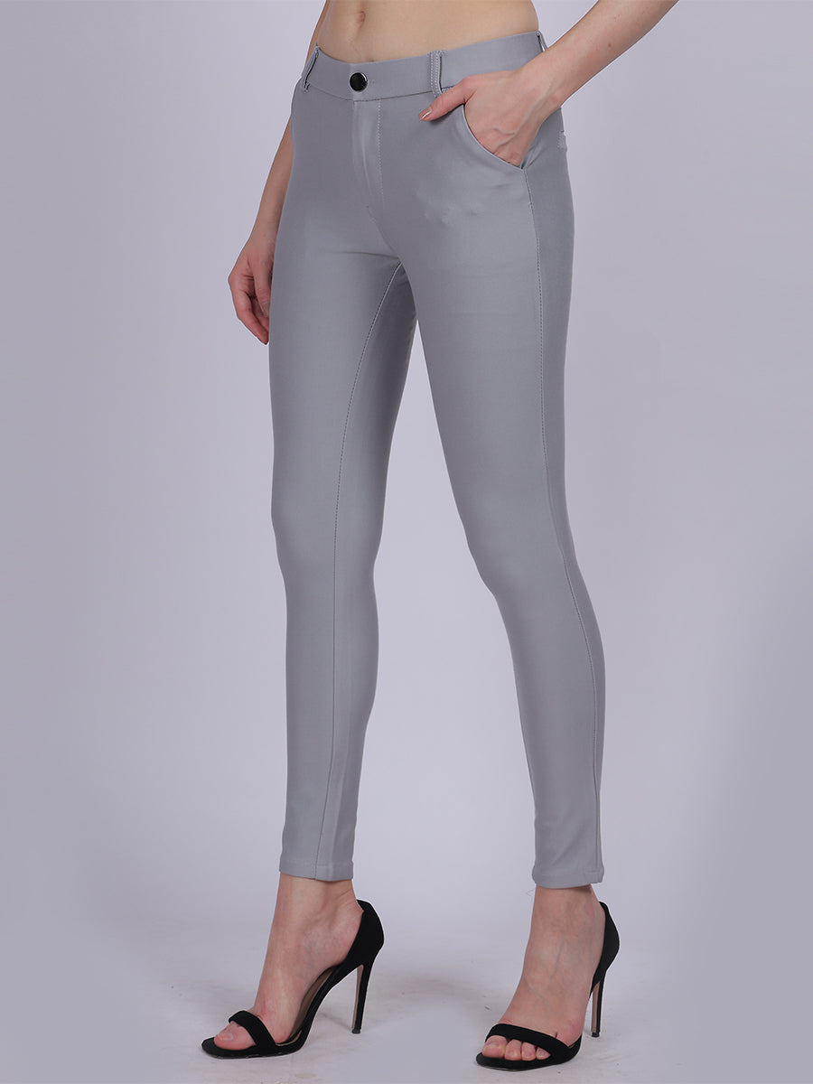 Light Grey Narrow Fit Formal Stretchable Pants