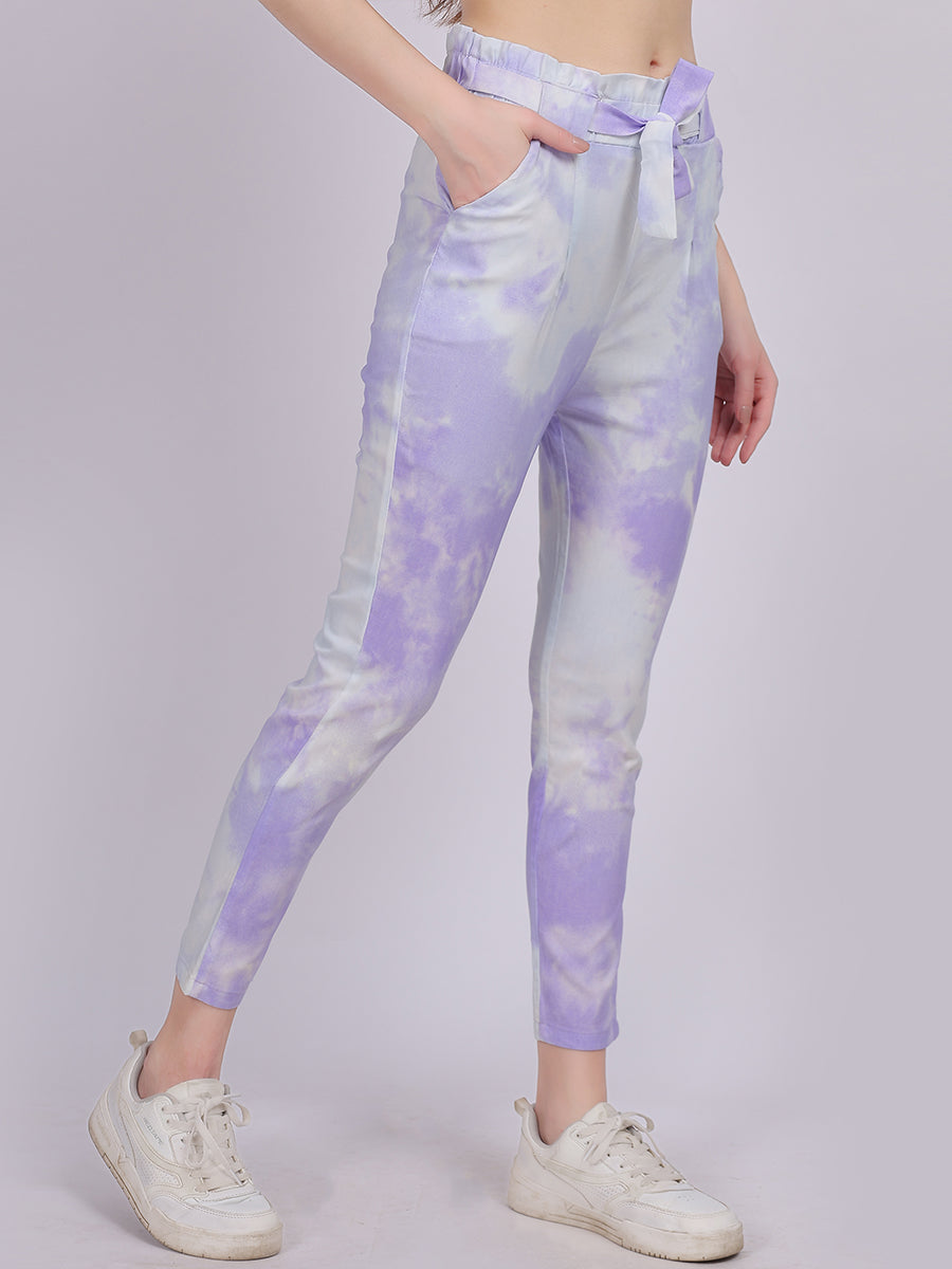 Light Purple Tye & Dye Cotton Spandex Fashion Narrow Fit Fashion Pants