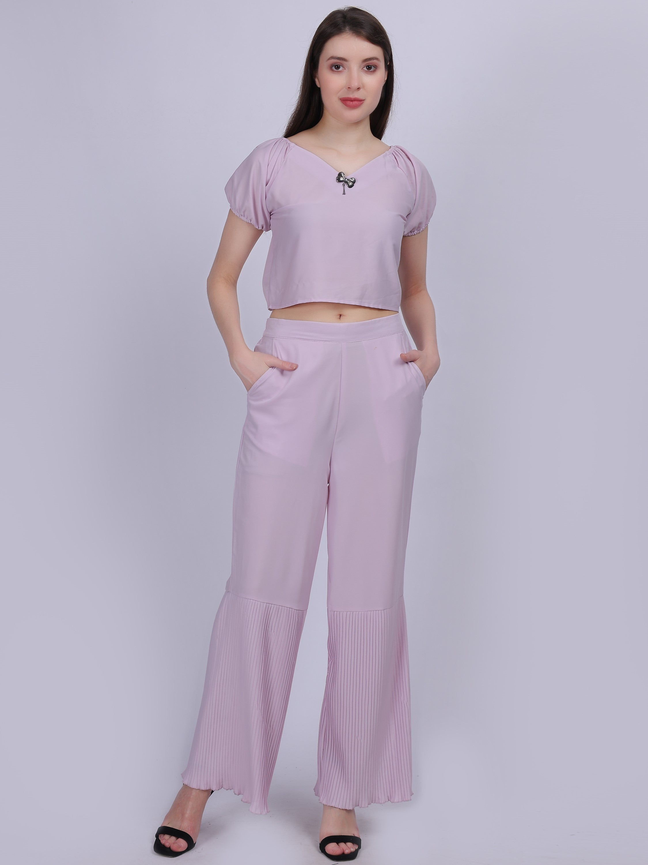 Lilac Fashion Co-ord Set With Pleated Straight Fit Pants