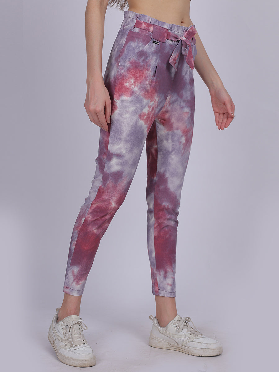 Magenta Tye & Dye Cotton Spandex Fashion Narrow Fit Fashion Pants