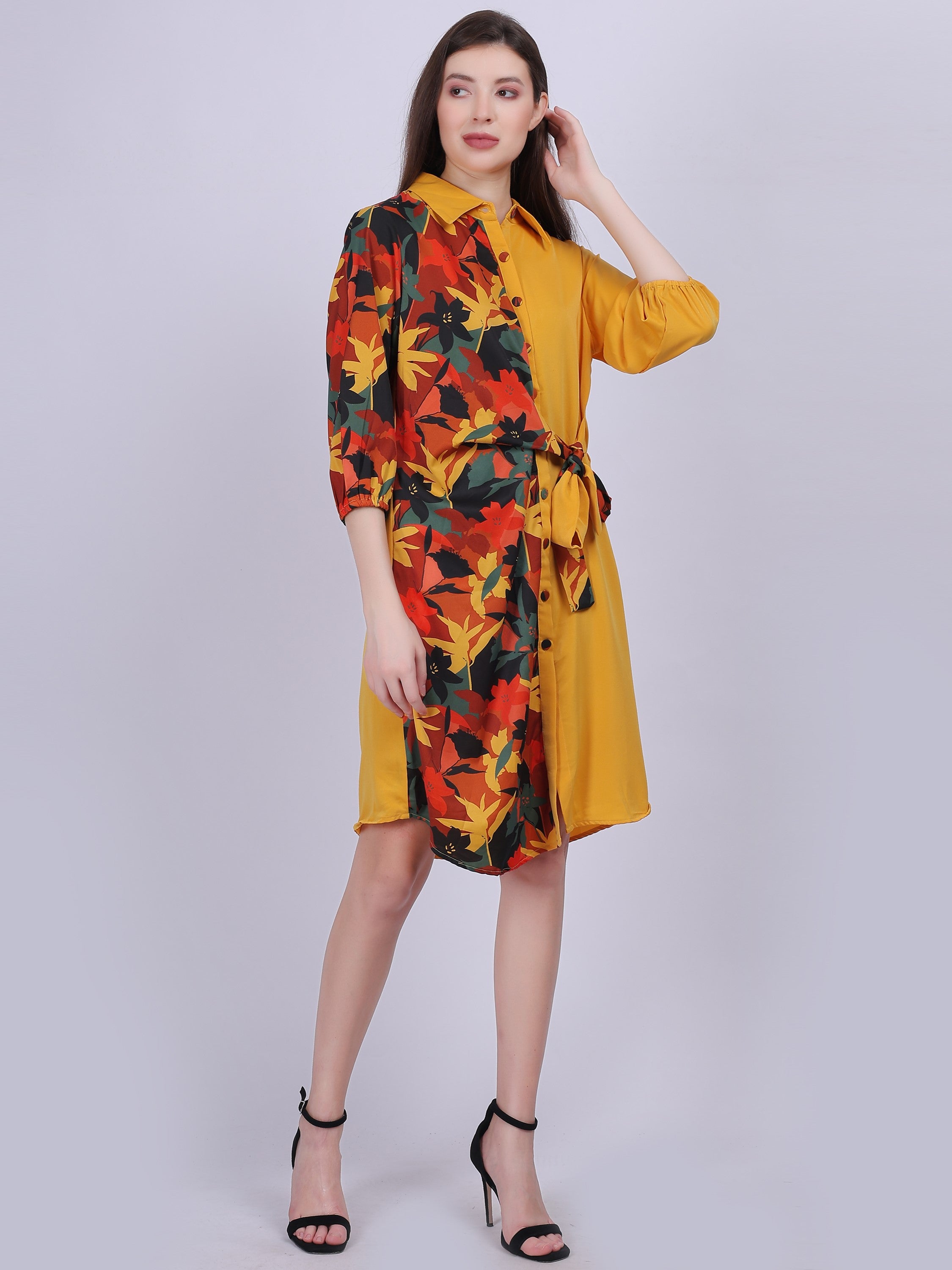 Introducing the AUMBE Mix & Match Shirt Dress with Waist Tie-Up Belt, a chic and versatile addition to your wardrobe. This shirt dress features a stylish mix-and-match pattern and comes with a waist tie-up belt, allowing you to cinch the waist for a flattering silhouette. Perfect for both casual and semi-formal occasions, it ensures you look effortlessly fashionable and polished.