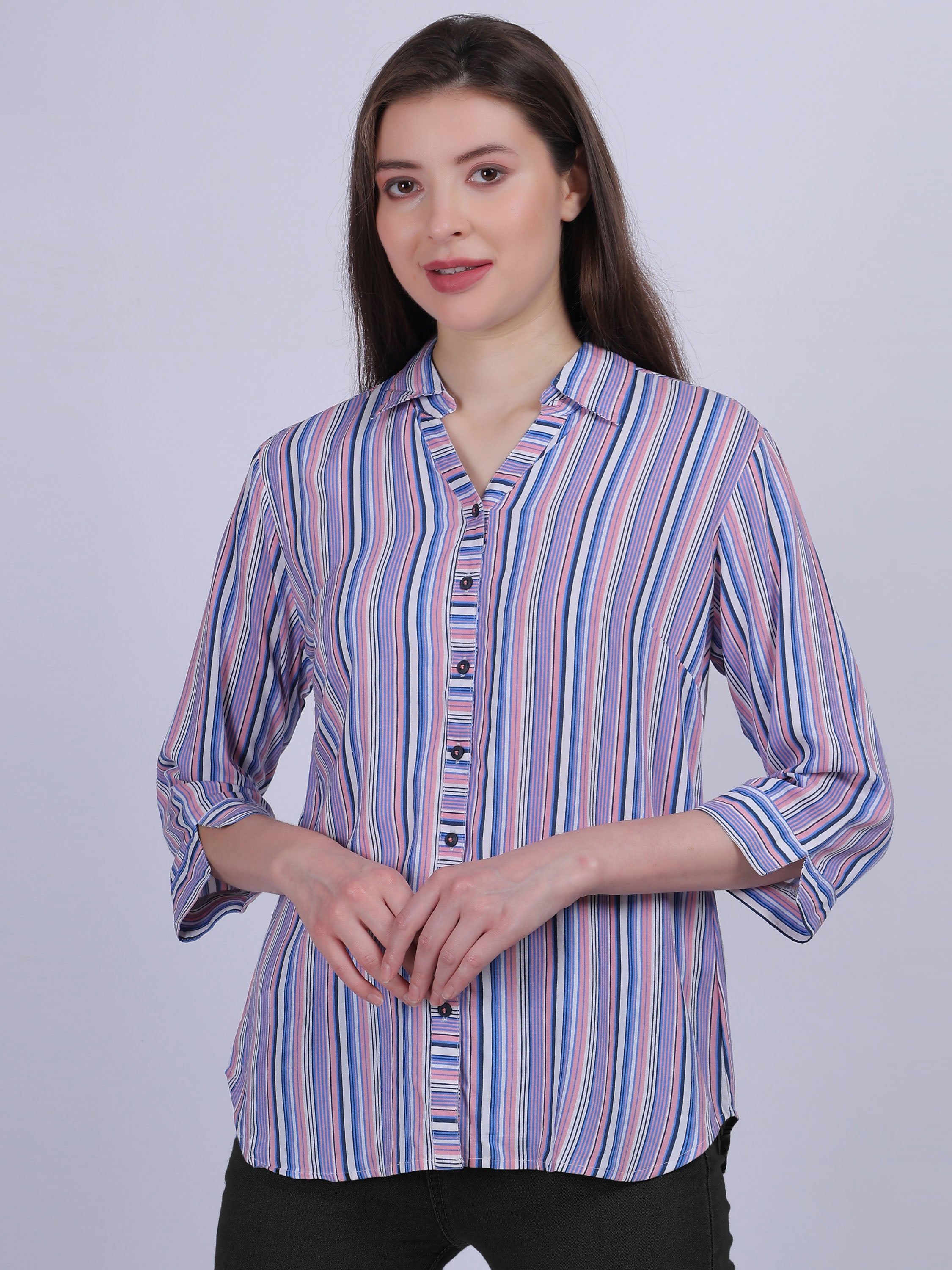 Introducing the AUMBE Multi Stripe Print Formal Shirt, a chic and contemporary choice for professional settings. This shirt features a dynamic multi-stripe pattern, adding a modern twist to your formal attire. Perfect for business meetings and special occasions, it ensures you make a stylish and confident impression.