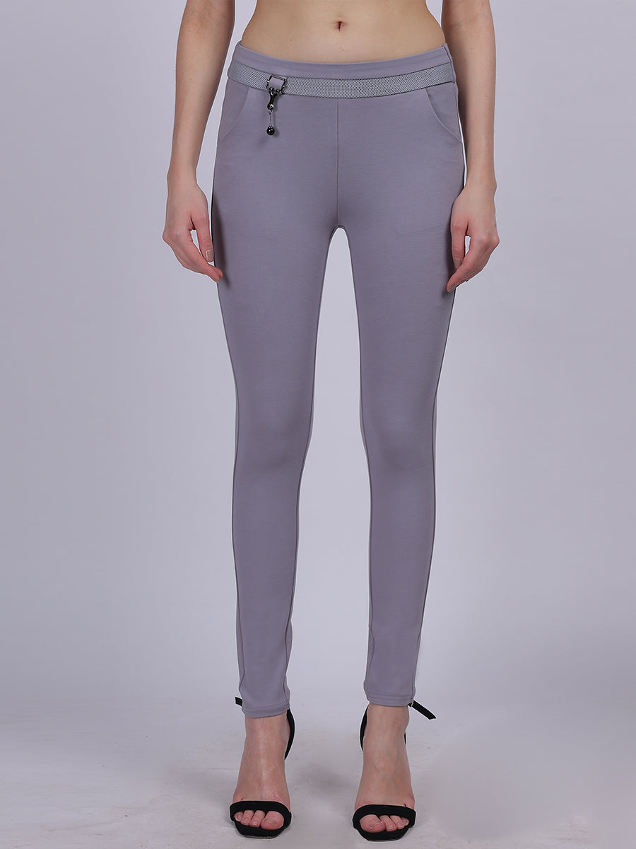 Light Grey Narrow Fit Stretchable Fashion Pants
