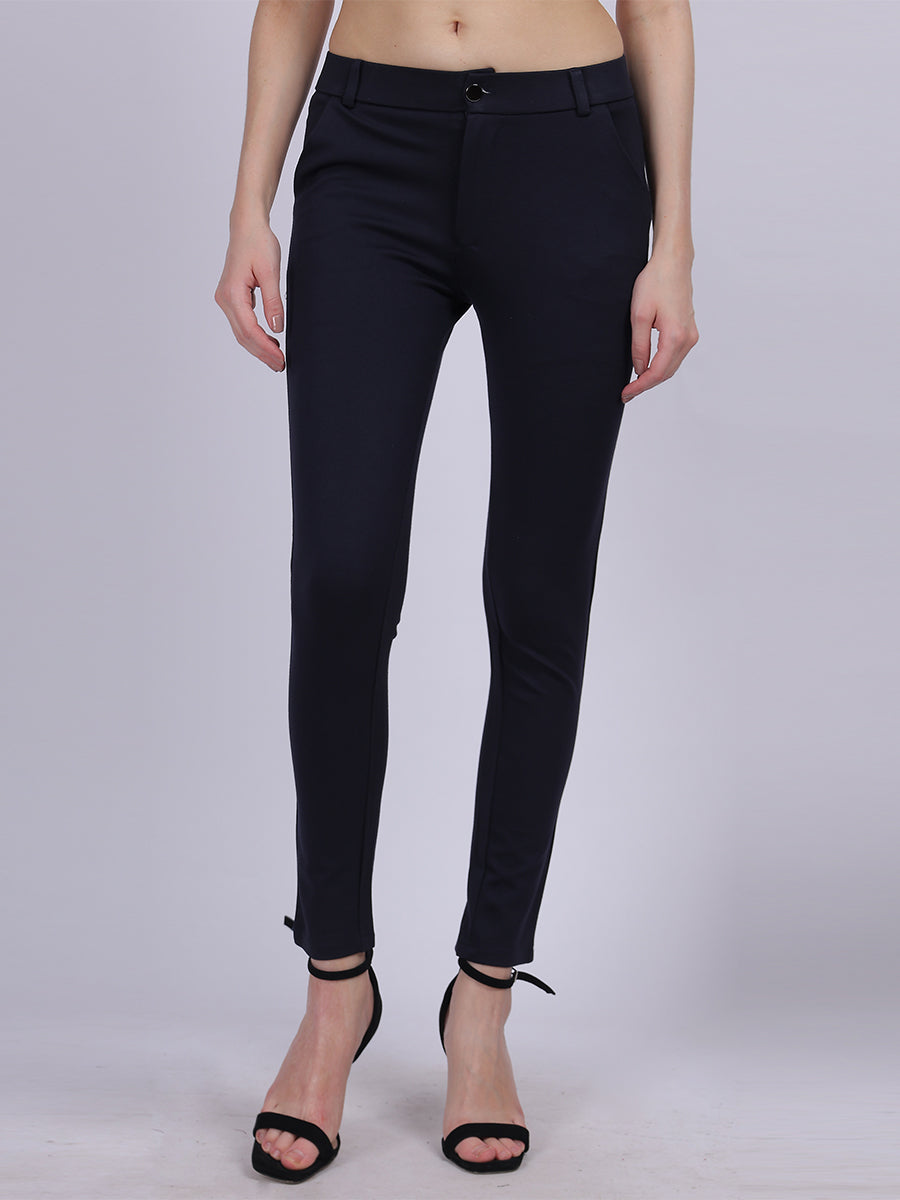 Navy Narrow Fit Formal Stretchable Pants
