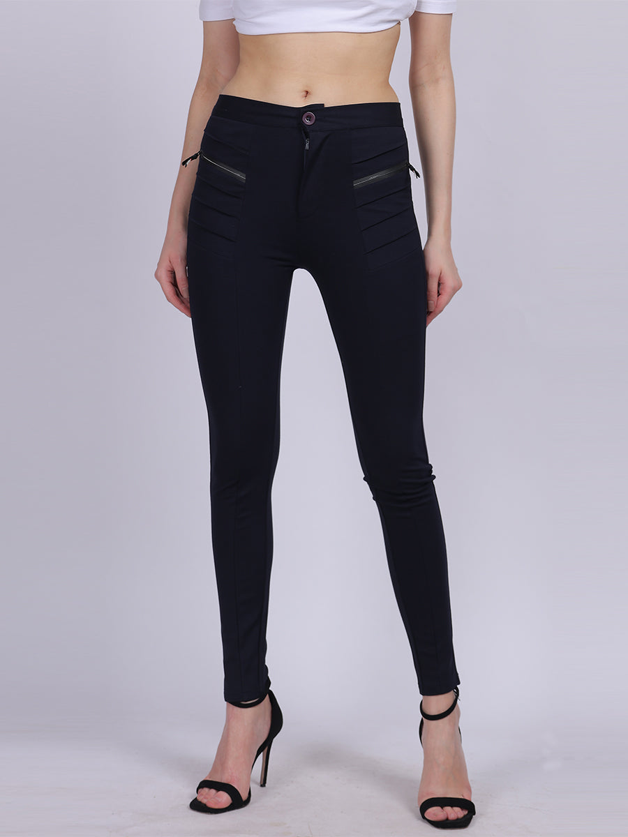 Navy Narrow Fit Stretchable Pleated Fashion Pants