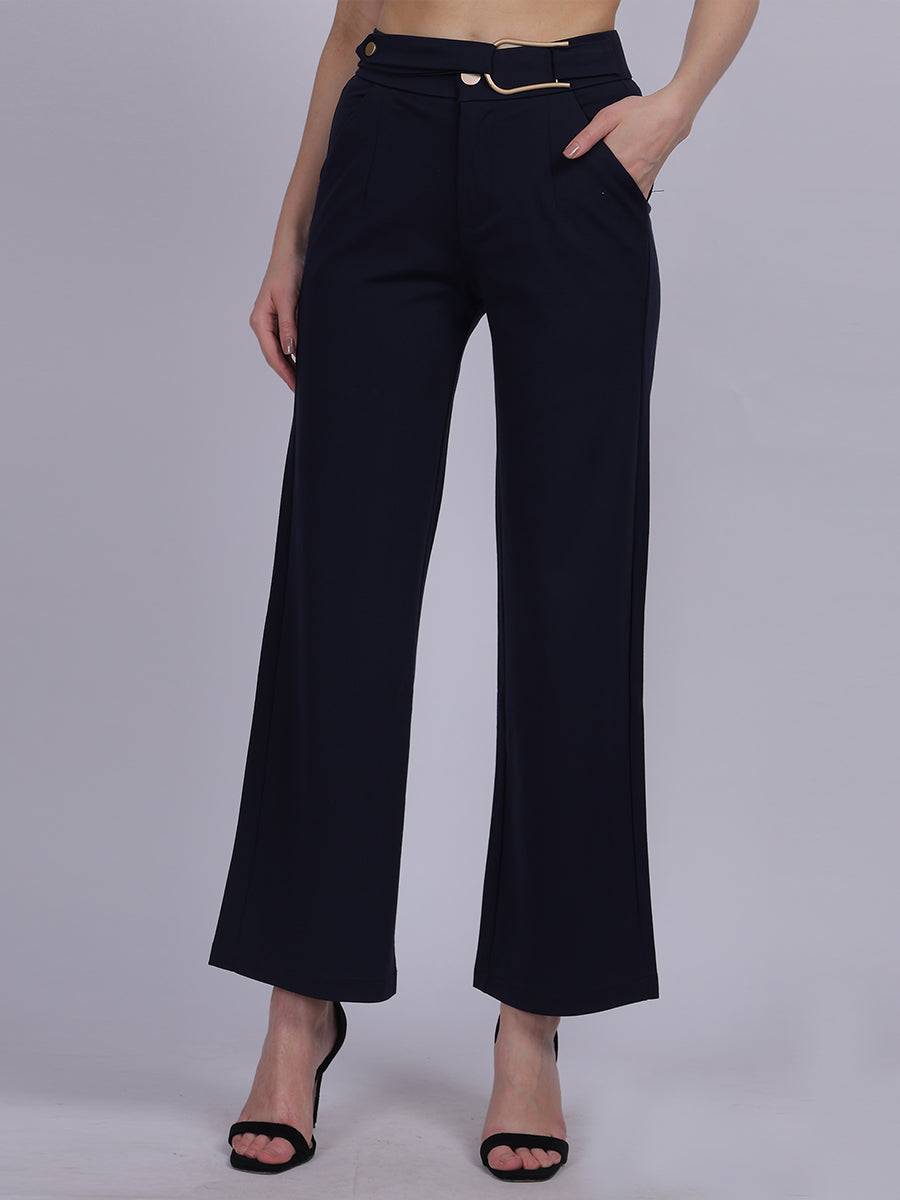 Navy Straight Fit Stretchable Fashion Pants