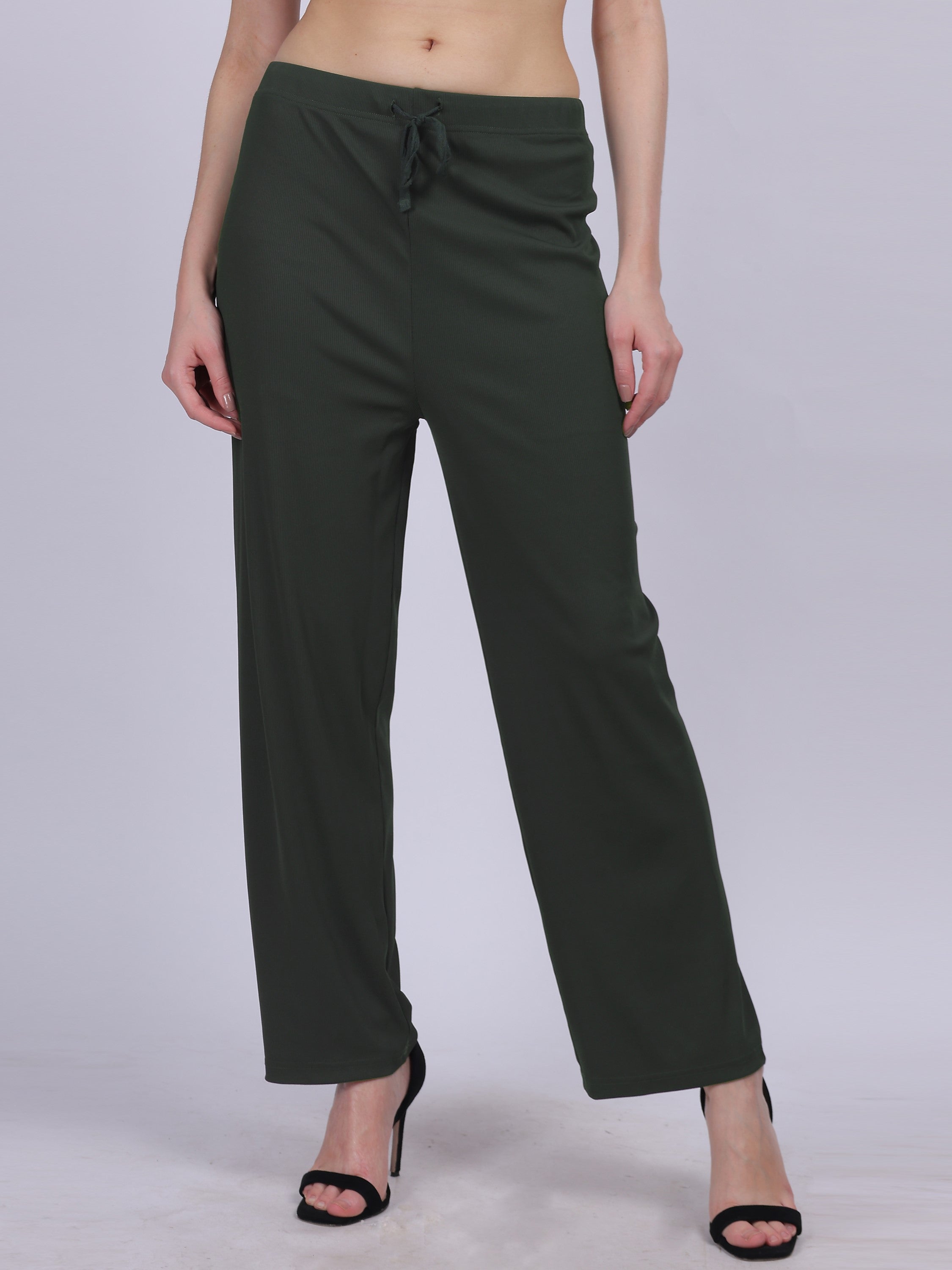 Olive Green Plain Fashion Pleated Straight Fit Pants