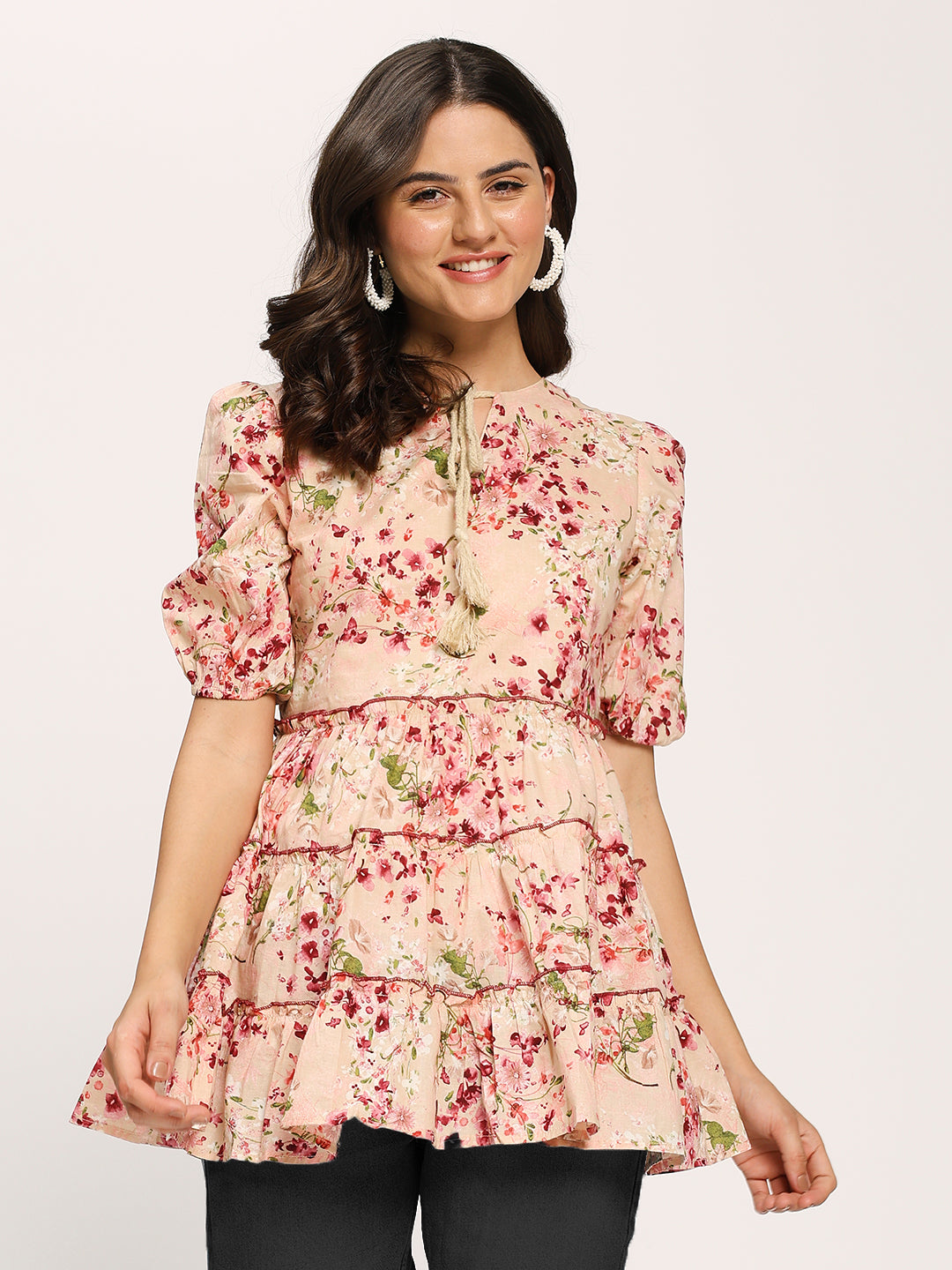 AUMBE FLORAL PRINT CASUAL COTTON TUNIC TOP.