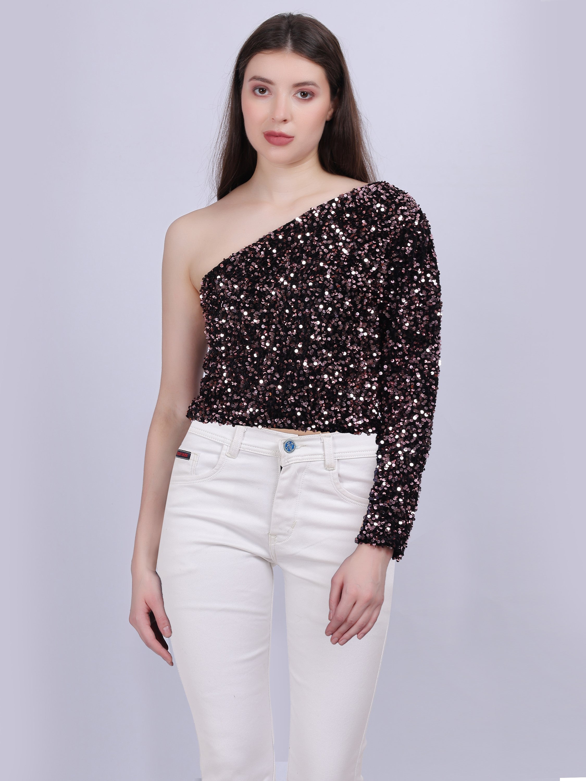 - ONE-SHOULDER SEQUIN TOP