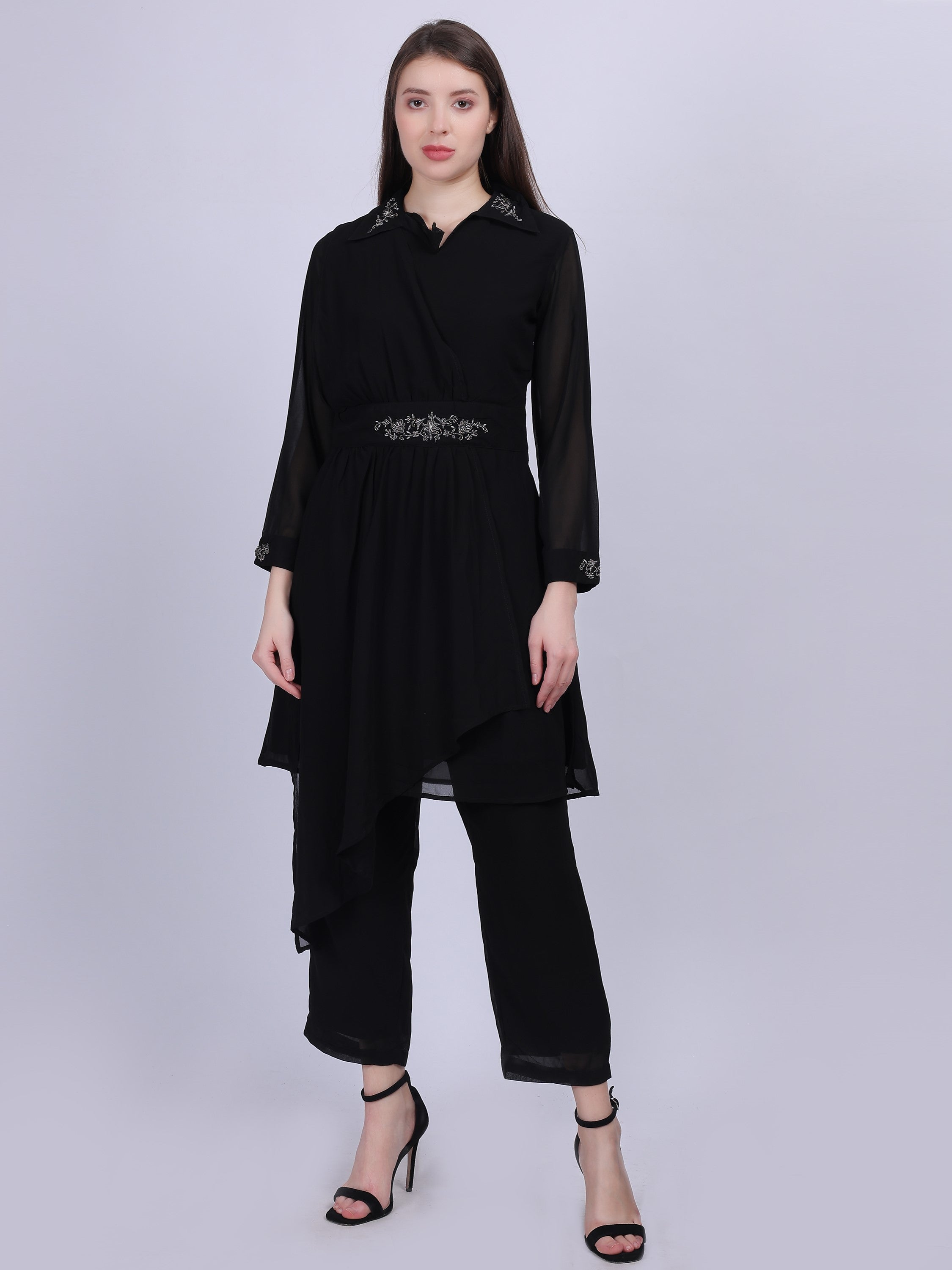 The AUMBE Plain Fashion Cord-Set with Hand-Work Embroidery on Belt & Cuff is a stylish and refined outfit choice. This cord-set features a classic plain design, elevated by intricate hand-work embroidery on the belt and cuffs, adding a touch of artisanal elegance. Ideal for both casual and semi-formal occasions, it combines timeless fashion with personalized detailing for a sophisticated look.