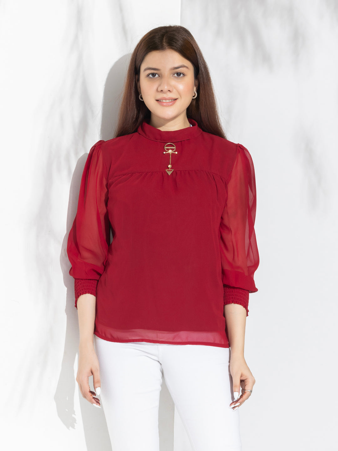 Introducing the AUMBE Solid High Neck Fancy Top, a timeless addition to your wardrobe. With its sleek high neck design and sophisticated solid color, this top offers both elegance and versatility. Perfect for layering or wearing alone, it’s an ideal choice for formal events or casual outings with a touch of refinement.