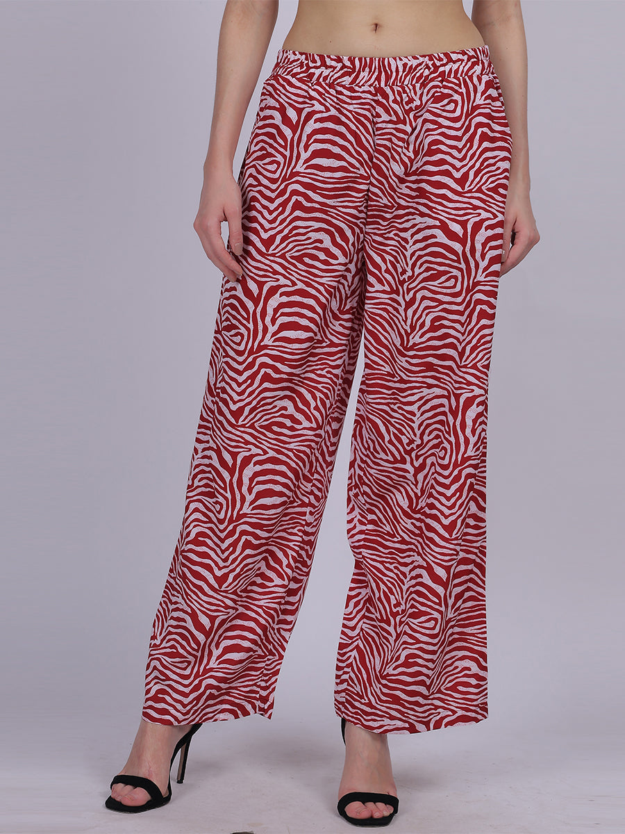 Red Zebra Straight Fit Printed Palazzo Fashion Pants