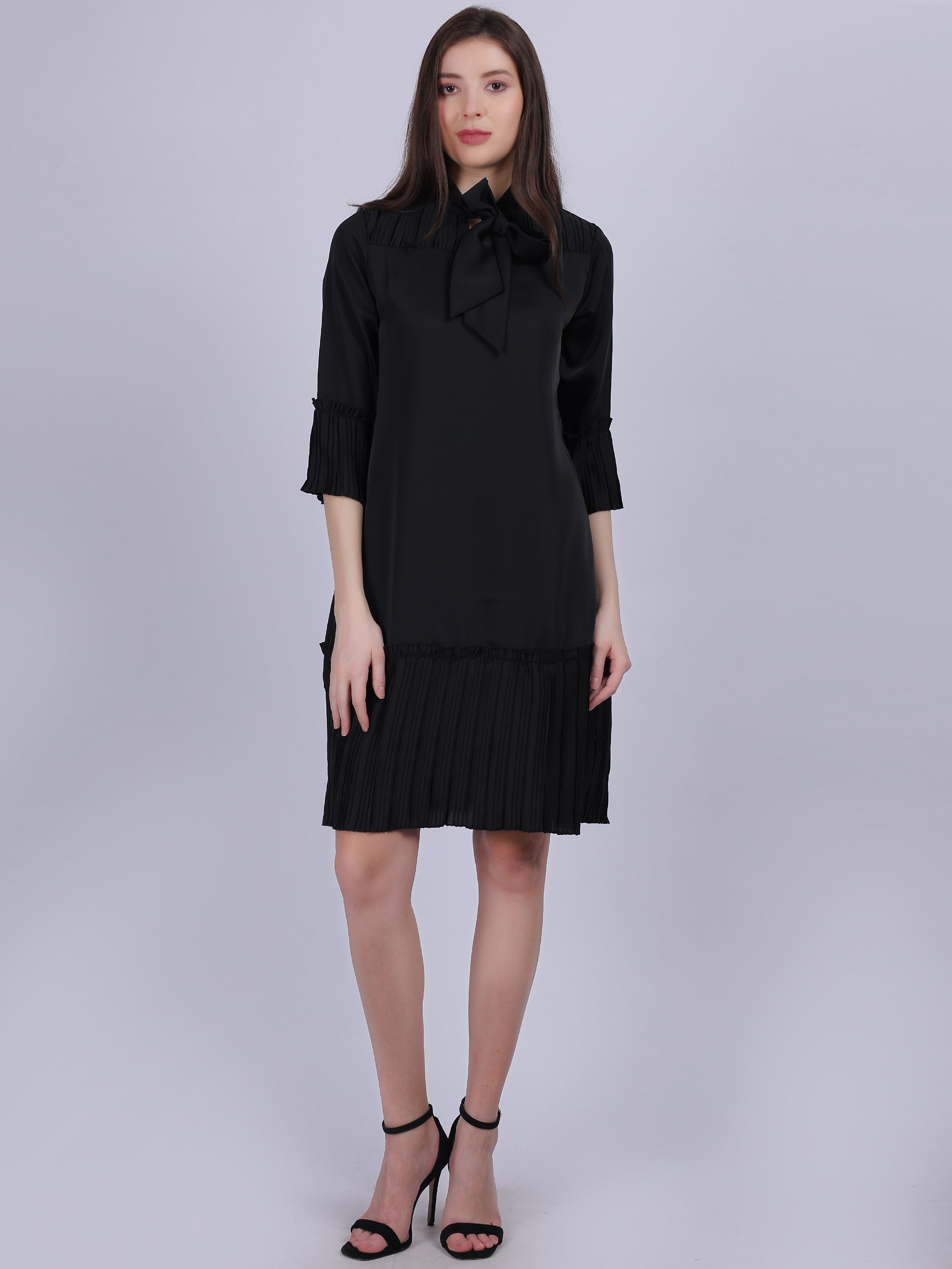 Satin Bottom Pleated Neck-tie Dress