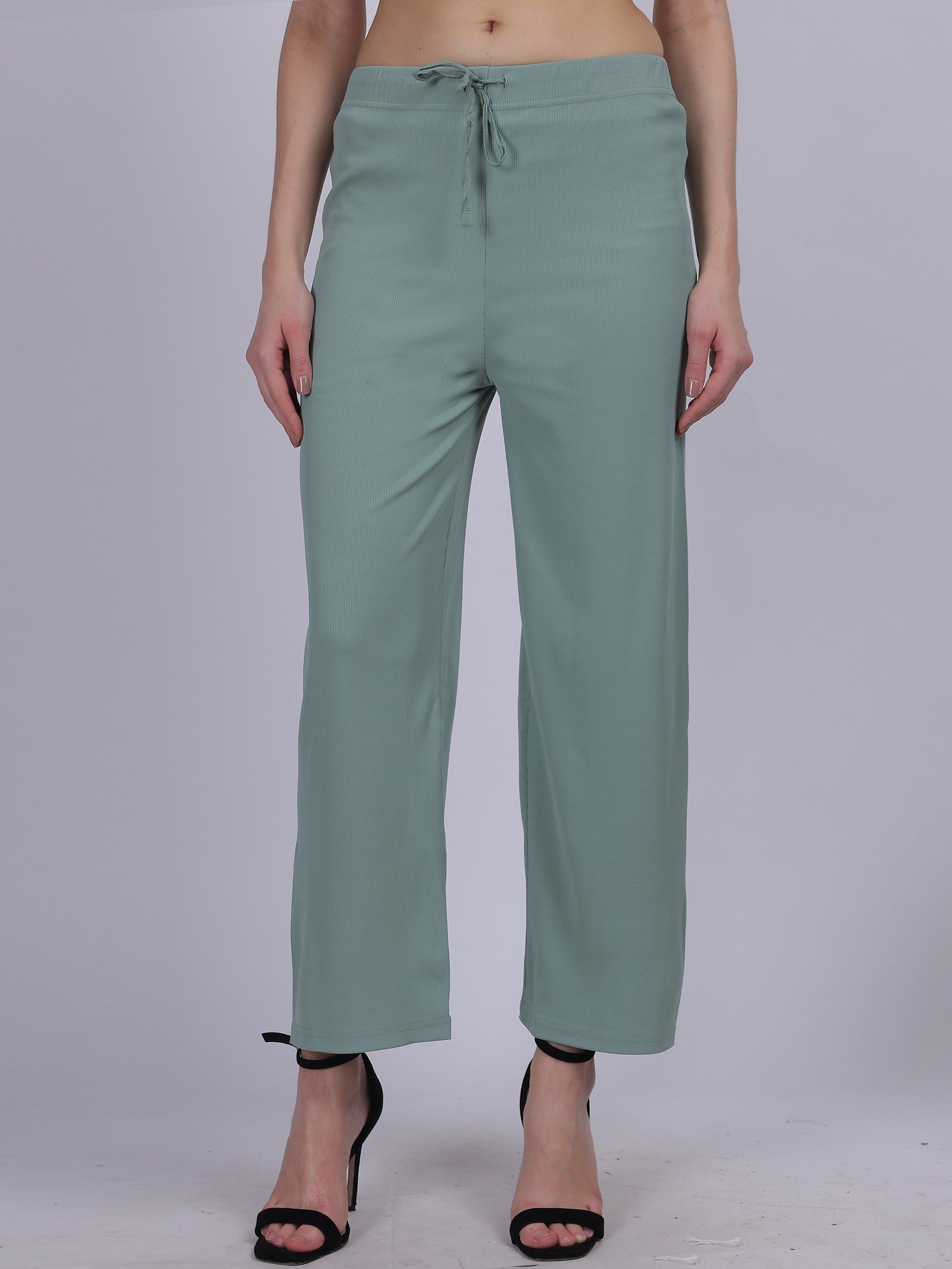 Sea Green Plain Fashion Pleated Straight Fit Pants