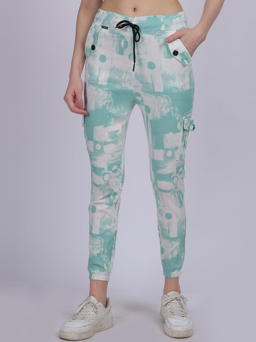 Sea Green Tye & Dye Cotton Spandex Fashion Joggers