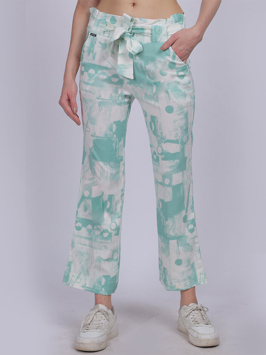 Sea Green Tye & Dye Cotton Spandex Fashion Straight Fit Pants