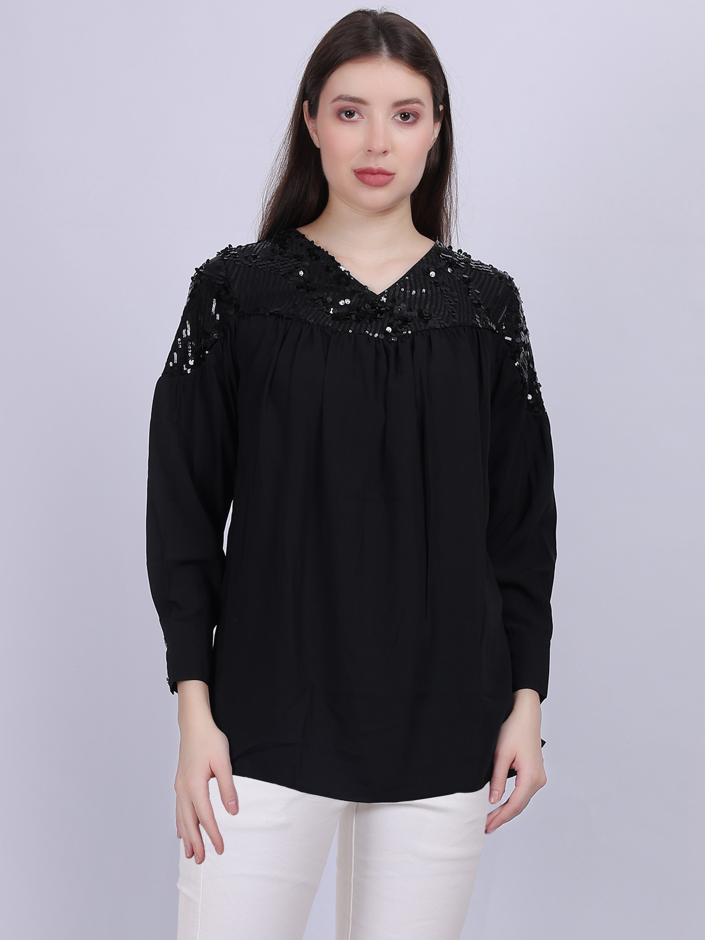 Solid Casual Top With Sequin Embellishment On Shoulder