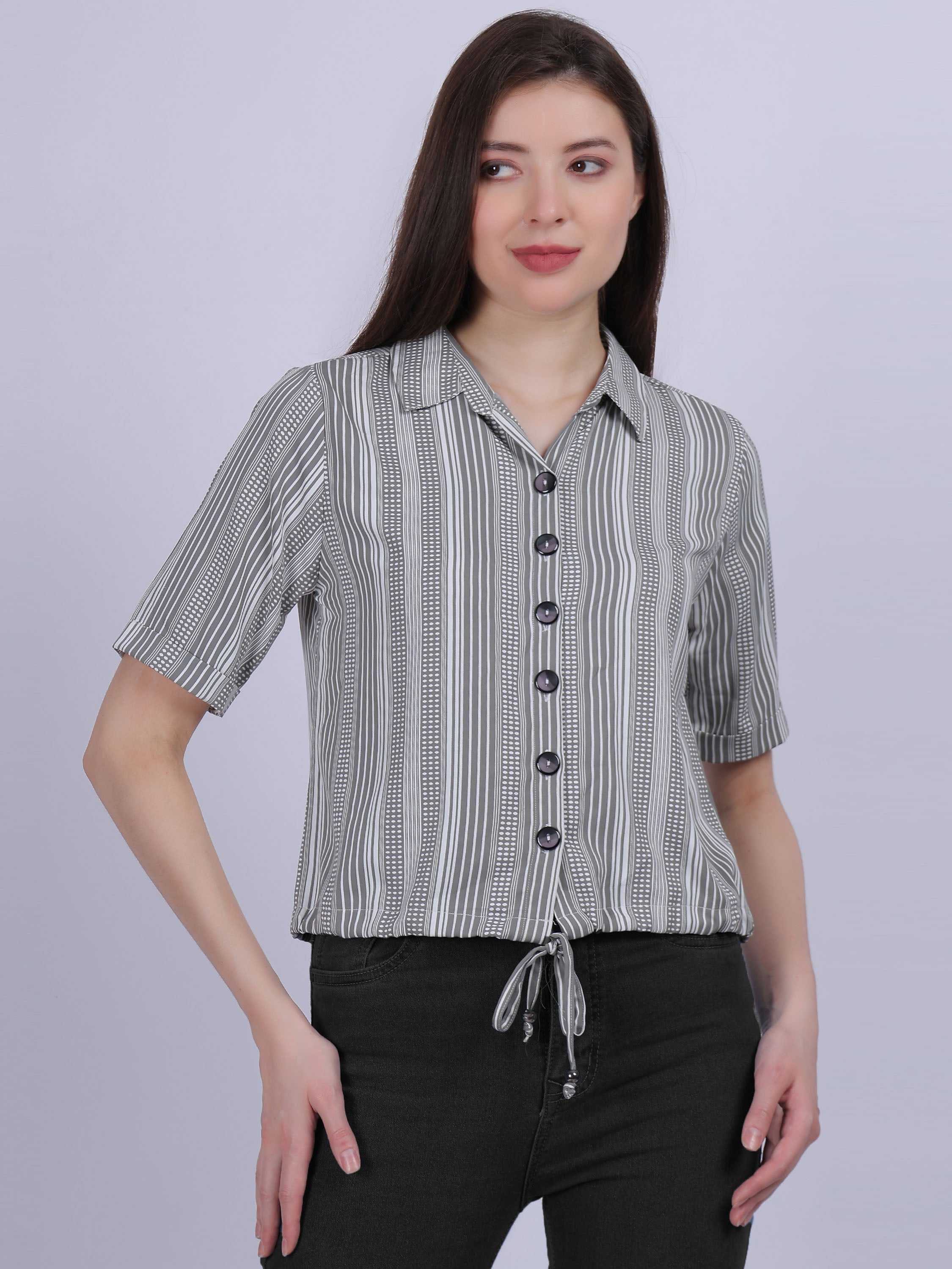 Introducing the AUMBE Stripe Print Crop Shirt with Tassels Cord, a stylish and playful addition to your wardrobe. This crop shirt features a trendy stripe print and is accented with a decorative tassels cord, adding a touch of fun and flair. Perfect for casual outings and relaxed gatherings, it ensures you look effortlessly chic and fashionable.