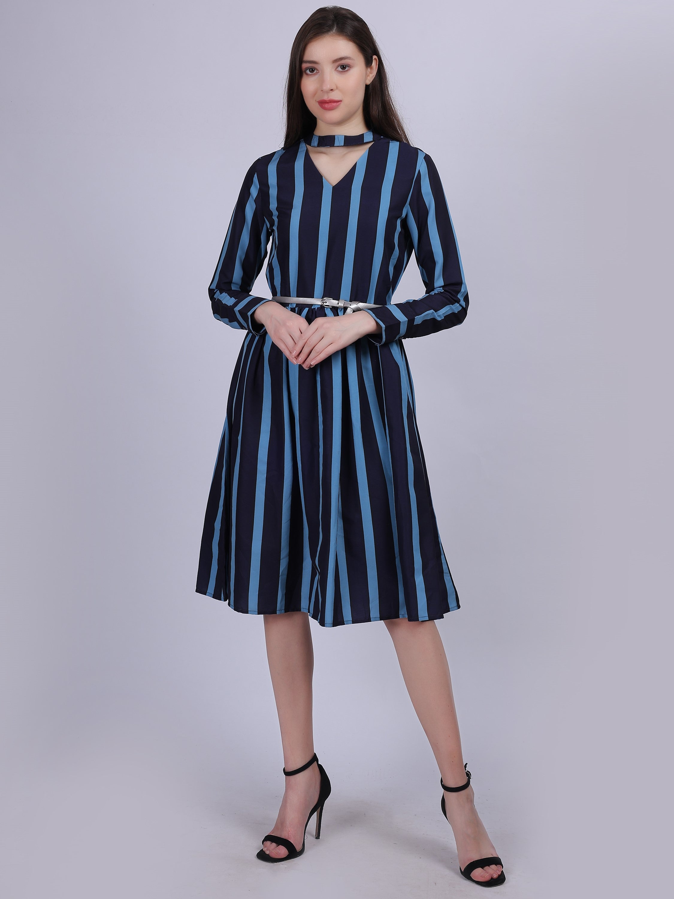 Introducing the AUMBE Stripe Print Fashion Dress with Belt, a chic and modern addition to your wardrobe. This dress features a classic stripe print with a flattering belt at the waist, accentuating your silhouette. Perfect for both casual outings and semi-formal occasions, it combines timeless style with contemporary flair.