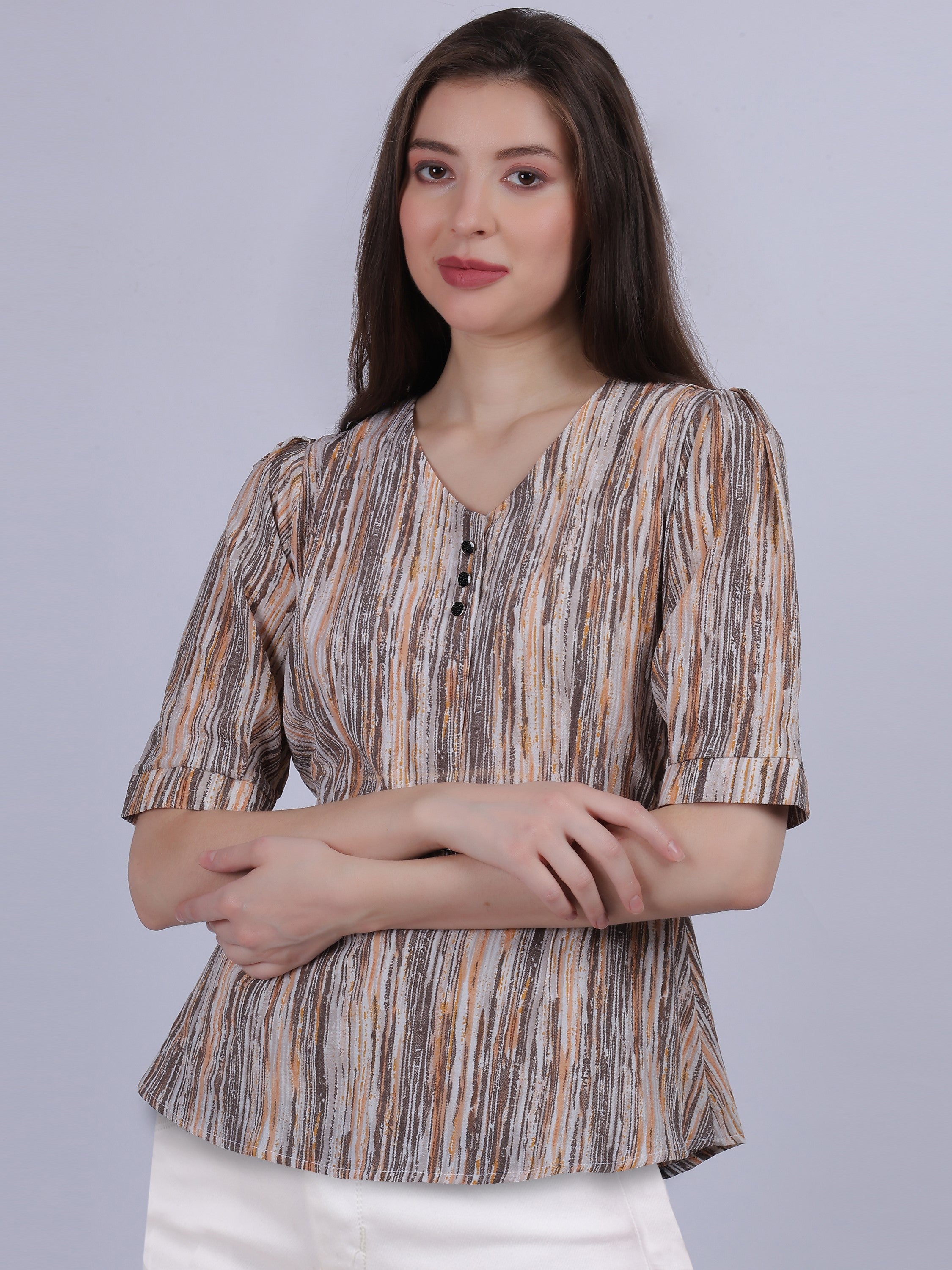 Introducing the AUMBE Textured Fabric Stripe Print Fashion Top with Attached Belt, a chic and contemporary addition to your wardrobe. This top features a stylish stripe print on textured fabric and includes an attached belt to cinch your waist, creating a flattering silhouette. Ideal for both casual and semi-formal occasions, it ensures you stay fashionable and polished.