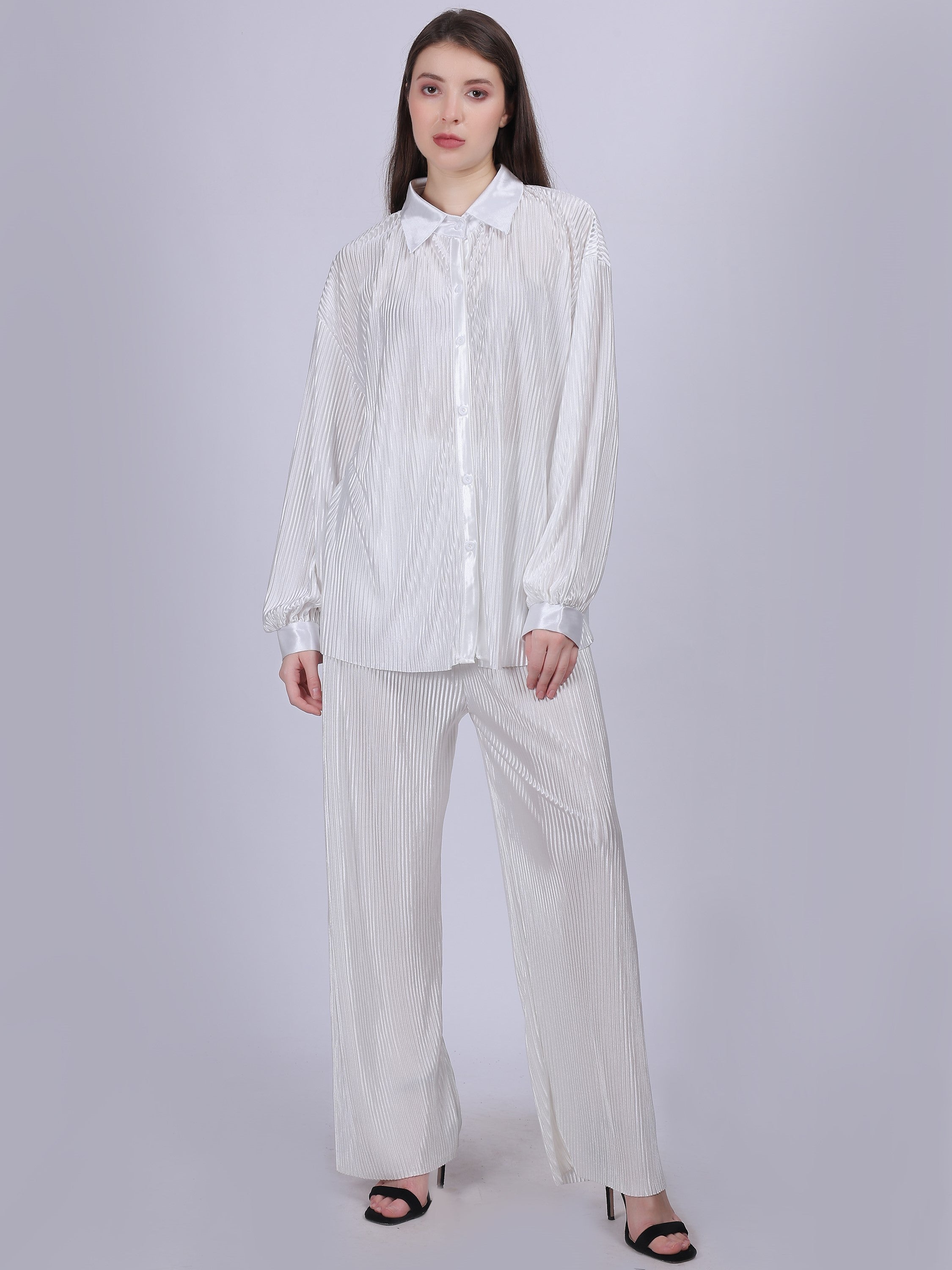 White Pleated Fashion Co-ord Set With Straight Fit Pants