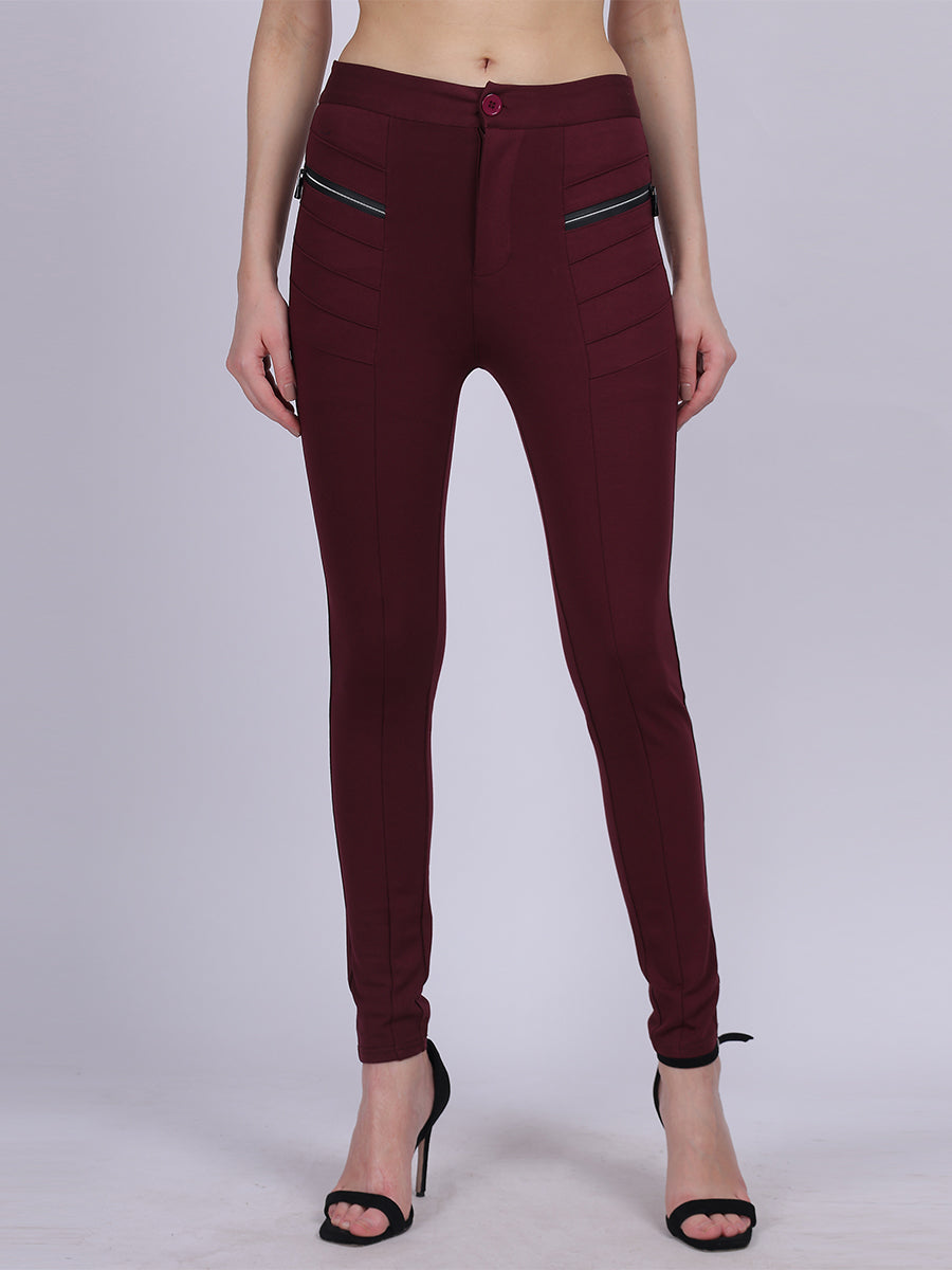 Wine Narrow Fit Stretchable Pleated Fashion Pants